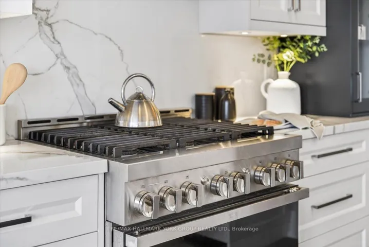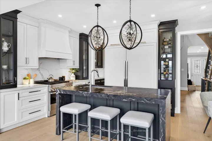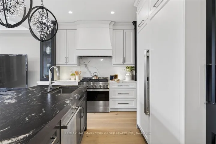 A rare find in King City, this bright and spacious executive townhome is tucked away on a quiet street and backs onto peaceful ravine greenspace. Attached only by the garage above grade, it lives more like a detached home-offering both privacy and an exceptional connection to nature.Set on a premium ravine lot, this beautifully upgraded home offers over 3000 sq ft of refined living space, complete with a rare finished walk-out basement and a double side-by-side garage. A custom solid oak staircase with wrought-iron railings sets an elegant tone, while wide-plank oak floors, crown mouldings, and designer lighting elevate every room.The open-concept main level is designed for both everyday living and entertaining, anchored by a stunning chef’s kitchen featuring a large island, 6-burner range, and full-size 36″ fridge and 36″ freezer. The adjoining family room overlooks the tranquil ravine, filling the space with natural light and offering a serene, private backdrop year-round.Upstairs, the primary retreat impresses with vaulted ceilings, a spa-inspired ensuite, and a fully customized walk-in closet, while the additional bedrooms are thoughtfully appointed with built-in closet systems.The bright walk-out basement extends the living space with oversized windows framing the greenery beyond, along with a sleek built-in bar, mini-fridge, abundant pot lights, and a full 4-piece bath-perfect for entertaining or accommodating extended family.Ideally located within walking distance to schools and shopping, and just minutes to GO Transit and Highway 400, this home delivers a rare blend of luxury, comfort, and natural beauty.