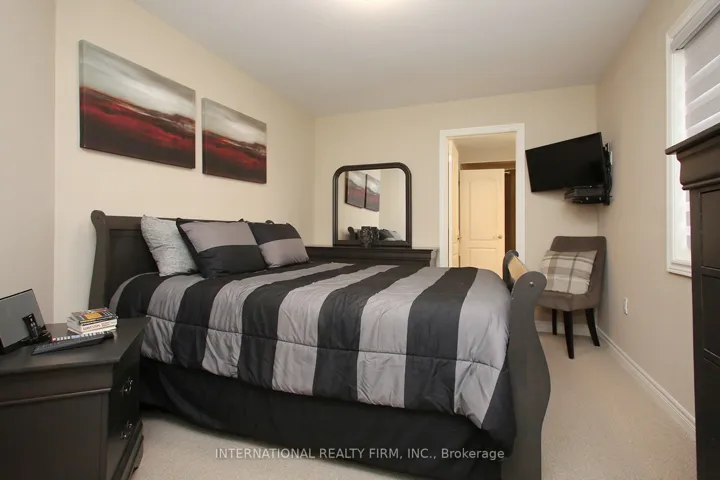 Welcome to this stunning 3 bed 3 bath end unit Freehold townhouse in the very Family-oriented Fairgrounds Subdivision. This bright, modern home feels like a semi and boasts many quality features and finishes. A gorgeous Stone front porch and columns and doubledoor entrance warmly welcomes you into a very functional, open concept main floor with 9 foot smooth ceilings, hardwood floors, potlights,California shutters, crown moulding, and plenty of natural light. The modern kitchen features Kitchen Aid appliances w/gas stove, quartz countertops with enhanced island, stylish backsplash, undermount lighting and generous cabinetry and pantry. Adjacent Dining room can accommodate a full sized table for those precious family moments, and ease of hosting any social gatherings. The cozy living room has a large window with picturesque view of greenspace, a gas fireplace with elegant floor to ceiling cultured stone, and a walkout to a large private deck which is perfect for relaxing or entertaining. Powder room with accent wall, large coat closet and direct garage access are thoughtfully appointed on the main floor. On the upper floor, the Primary bedroom suite is a spacious sanctuary with wall to wall windows providing plenty of natural light, walk in closet and ensuite bathroom retreat with standup shower and soaker tub. The second and third bedrooms are a generous size with shared semi-ensuite bathroom for privacy and convenience. Third bedroom/office has a custom feature wall and larger window overlooking the backyard. Upper floor laundry room with tub sink for convenience. The unfinished basement has above grade casement windows and awaits your creativity and finishing touches. Interlock stone, extensive landscaping and potlights really compliments and enhances the exterior beauty of this property! Don’t miss the opportunity to view and make this your new family home! Just minutes away from schools, parks, grocery stores, restaurants, Lake Simcoe, churches, Hwy 48 and 404.