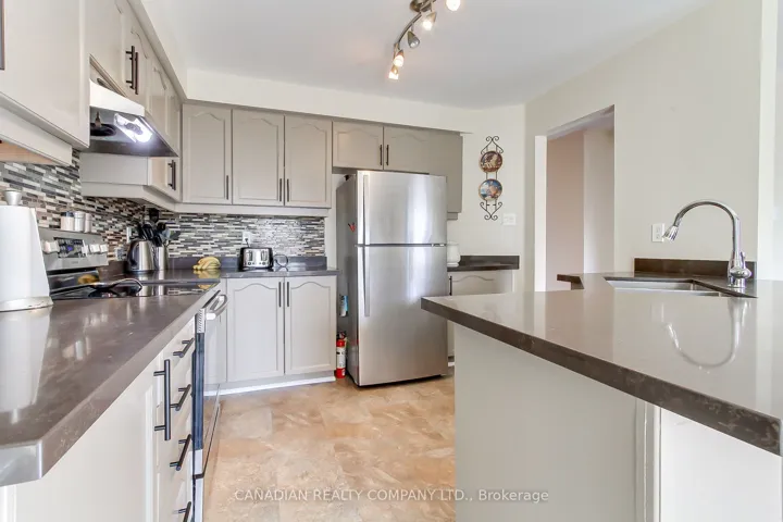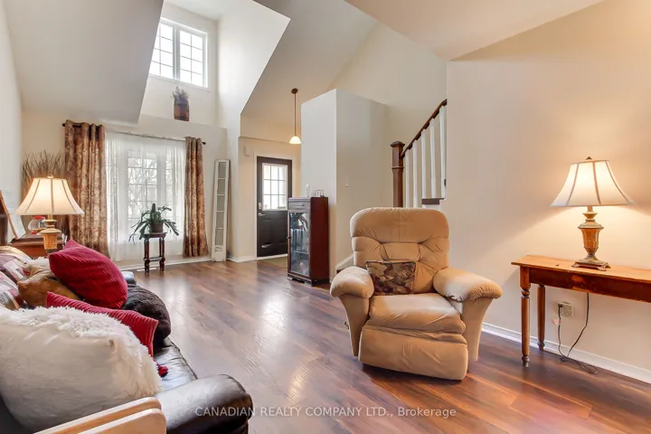 Large and well appointed 3bdrm freehold townhome in a family friendly neighbourhood. This home is bright and clean and features a large eat-in kitchen, family room with fireplace and cathedral ceilings in main living area. The basement is fully finished with an ample rec room with pot lights. 3 bedrooms with a primary bedroom featuring a 4pc ensuite and walk-in closet. No carpet in the home. Newly painted and fresh flooring on upper floor. From the front porch to the backyard, this home is very well kept and clean.