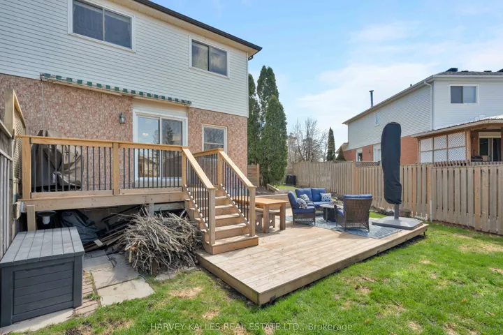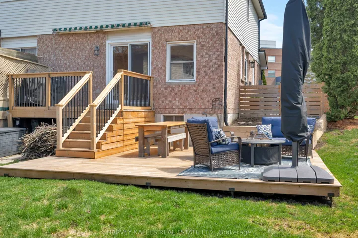 A bright, spacious end-unit family home on a large fully fenced lot in sought-after College Manor, thoughtfully renovated from 2019 through 2026. Generous principal rooms, three bedrooms up, three bathrooms, and a finished lower level deliver everything a growing family needs.The primary bedroom comfortably fits a king with room to spare, with two additional bedrooms upstairs. White oak Athena hardwood runs the upper level and staircase (2022); luxury vinyl plank anchors the main floor and finished basement. All three bathrooms have been thoughtfully updated in the last five years, including the upstairs four-piece this year.The main floor opens to a custom feature wall with electric fireplace (2021), pot lights throughout, and a walkout to the new back deck (2024). The kitchen offers a gas range, counter-depth refrigerator, new dishwasher (2024), and tiled backsplash, flowing into the dining area. A renovated mudroom adds valuable storage and connects to the attached garage.The finished lower level offers additional entertaining space with an oversized recreation room nearly 18 feet wide, wet bar, and a three-piece bath with glass shower (2024). A flexible second living space, ideal as a guest suite, media room, or in-law setup.The backyard is large and fully fenced (2020), perfect for kids, pets, or entertaining. Mature landscaping, front irrigation (2022), interlock walkway (2023), freshly repaved driveway (2024), and central air (2023). Attached garage plus two-car drive.Steps to Magna Centre, parks, and College Manor schools. Minutes to the 404, Newmarket GO, and Upper Canada Mall.