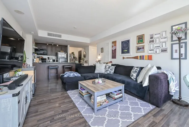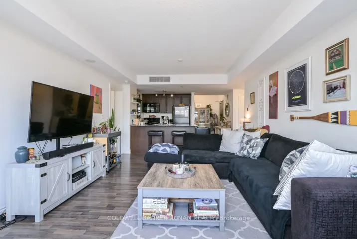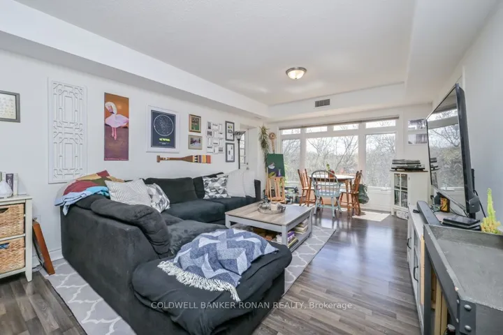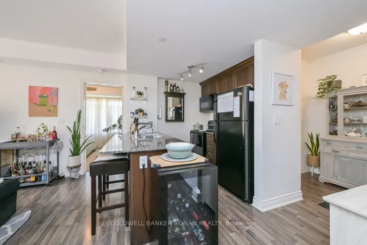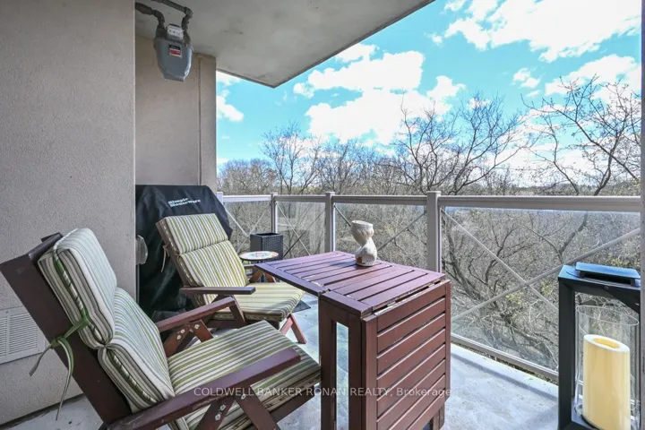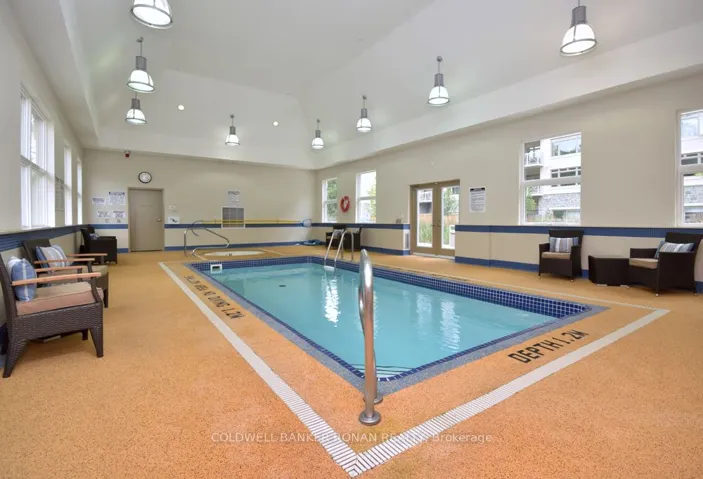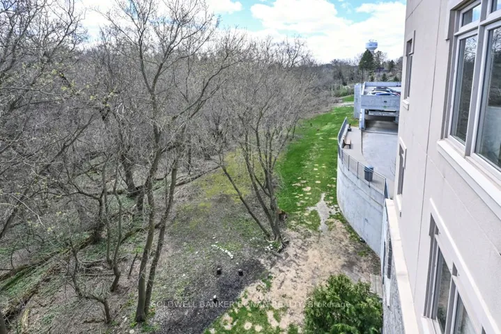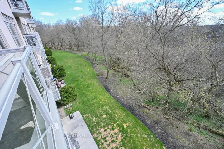 A lovely and bright 2 bedroom + plus den and 2 bathroom condo. Totaling 1120 sq ft making it the second largest floor plan in the building. This open concept split bedroom design features kitchen with breakfast bar and granite counter tops. A large primary bedroom with a walk in closet and a 3 piece ensuite with a walk in shower. A second 4 piece bath and a den that is perfect for remote work space/office or a third bedroom. The living room space with laminate flooring and a walk out to a 75 sq ft patio with natural gas hook up for BBQ and over looks the forest/ravine space. Complete with an underground parking space and locker conveniently just steps from the unit itself. Building features include security fob entrance, indoor pool with change rooms, large gym with equipment, and courtyard space.