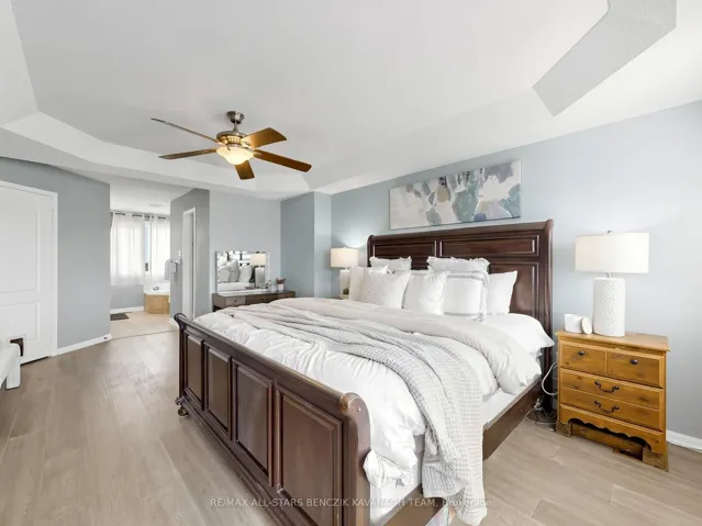 Beautiful three-storey family townhome in Cornell offering 3 spacious bedrooms and 10′ ceilings on the main floor. Landscaped exterior with stone steps, walkway, and enclosed front porch. Open-concept living and dining area with fireplace, engineered hardwood flooring, and large windows with California shutters. Eat-in kitchen with stainless steel appliances, pantry storage, and walkout to deck. Second floor features a family room with fireplace, two bedrooms with engineered hardwood flooring and California shutters, and a 4-piece bath. Third-floor primary retreat with coffered ceiling, engineered hardwood flooring, California shutters, and 4-piece ensuite with separate shower and soaker tub. Finished space in the basement offers bamboo flooring and pot lights. Backyard with deck, garden space, stone walkway to detached garage, and additional parking pad. Walking distance to schools, Cornell Community Centre & Library, Markham Stouffville Hospital, and Cornell Dog Park. Easy access to Cornell bus terminal and Highway 407.