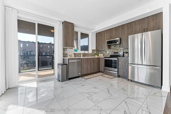 This 4-bed, 5-bath freehold townhouse offers over 2,000 sqft of upgraded above-grade living space, plus a finished basement, with NO POTL fees. Built just 2 years ago, this end-unit features massive southern exposure and feels like a semi. With 9ft ceilings on all 3 levels and natural light flooding in all day, every floor feels open and airy. The interior is finished with premium red oak hardwood floors, a matching stained oak staircase, and pot lights throughout the main floor and in showers. The kitchen stands out with upgraded quartz countertops, 42″ extended upper cabinets, large-format polished porcelain tile flooring, and a built-in water purifier. The primary ensuite delivers a spa-like experience with Caesarstone countertops, sleek square undermount sink, and a frameless glass shower. A whole-home water softener adds everyday practical value. The builder-finished basement and ground floor bedroom each come with their own full bath. Ideal for multi-generational living or a dedicated home office setup. Enjoy a rare 15ft wide garage with direct access, plus an extended private driveway with space for 4 additional cars. Located just minutes from schools, parks, the Community Centre, Markham Stouffville Hospital and great shopping. Quick access to Markham GO, public transit and Hwy 407. It’s the perfect blend of urban convenience and community charm for modern family living.
