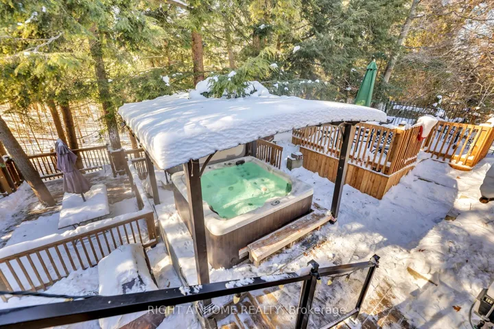 Tucked away on an exclusive private street shared by only three homes, 600 Henderson Drive offers a rare sense of seclusion and tranquility surrounded by mature trees and ravine views while still being centrally located in the highly sought-after Aurora Highlands. This extensively renovated 3+1 bedroom, 4 bathroom home is a must see. The main level showcases a stunning chef’s kitchen with granite countertops, backsplash, and an impressive 88″ x 38″ waterfall island, complemented by stainless steel appliances. Engineered hardwood flooring, pot lights, skylights and sun tunnels fill the home with natural light, while a striking two-sided Crema Marfil marble gas fireplace anchors the living space. Walk out from both the living room and primary bedroom to a fully upgraded balcony featuring new flooring, glass railings, wood ceilings, pot lights, and a ceiling fan, all overlooking a private ravine setting. The spa-inspired primary ensuite features travertine tile throughout and a quartz countertop vanity. The fully finished lower level offers a second kitchen with granite counters and stainless steel appliances, a full bath with stand-up shower, a dry sauna accommodating 5-7 people, and a walk-out to an interlock patio. Enjoy your own backyard oasis with landscaped grounds, multiple decks, gas line for BBQ, Hot tub, and serene ravine views. Ideally located close to top-rated schools, trails, shopping, and more. A true showstopper not to be missed.