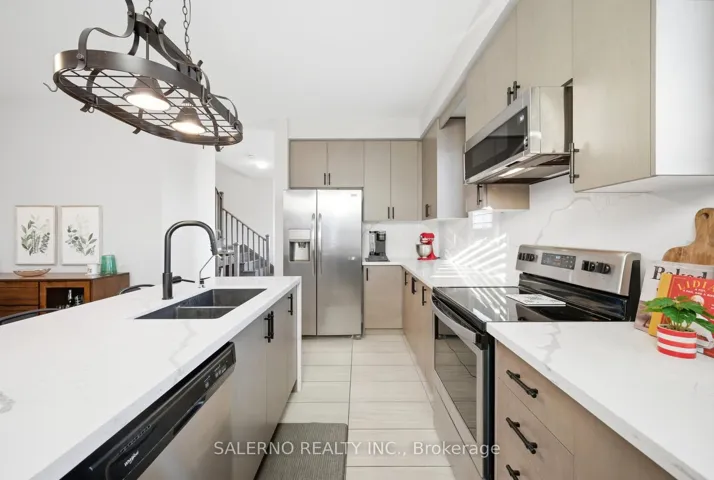 Welcome To This Well-Maintained End-Unit Townhome Offering 3 Bedrooms, 3 Bathrooms, And Approximately 2,282 Sq.Ft Of Total Living Space. The Main Floor Features A Spacious Kitchen With Centre Island And Double Sink, Seamlessly Overlooking A Family-Sized Eat-In Dining Area With Walkout To A Private Backyard-Ideal For Everyday Living. Hardwood And Laminate Flooring Run Throughout, Creating A Clean And Consistent Feel Across The Home. The Finished Basement Provides Additional Living Space Perfect For A Recreation Area, Home Office, Or Extended Use. Complete With A Full 2-Car Garage And Additional Driveway Parking, This Home Offers A Functional Layout And Practical Living In A Growing Community.