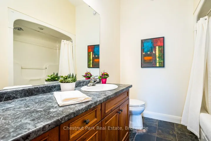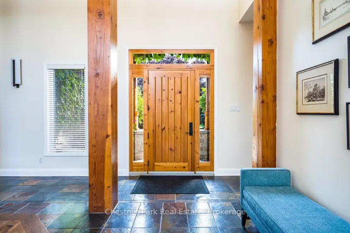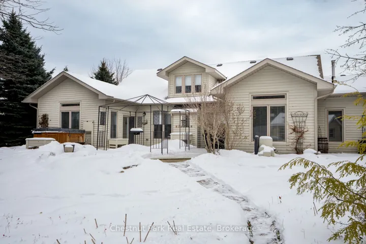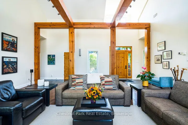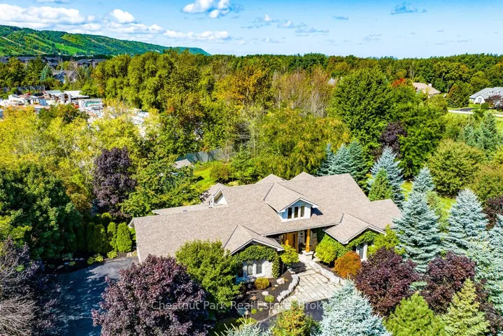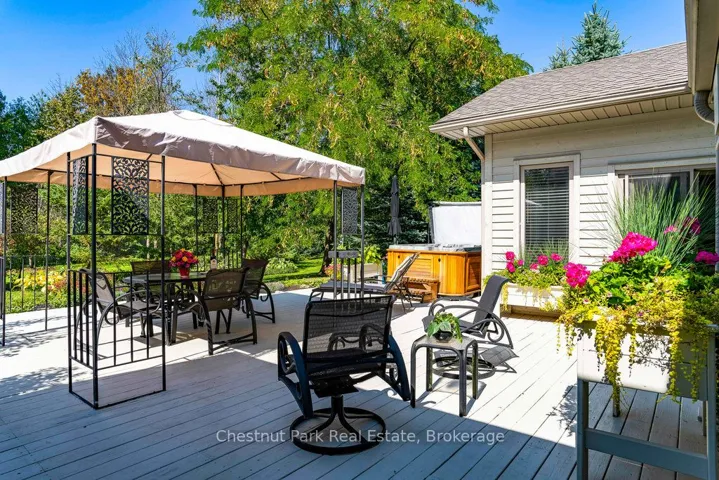 OPEN HOUSE Saturday April 11th – 1 – 3 PM – Imagine living just two minutes from Blue Mountain’s ski hills, golf courses, shops, restaurants, and everything Collingwood has to offer. Hop on your bike and in 15 minutes you’re riding the Pretty River Valley–one of the region’s most scenic road cycling routes. Set on a private 1-acre lot in a park-like setting, this executive ranch-style bungalow with 2 car garage offers easy access to the area’s best walking and biking trails, making it an ideal base for four-season living. Beautifully landscaped and surrounded by mature trees and perennial gardens, this home offers 2,532 square feet of finished living space, including 4 bedrooms (one currently used as a study), 3 full baths, and a cozy media room. Radiant in-floor heating and a split ductless system ensure year-round comfort. In the great room, a soaring 17.5 vaulted ceiling and wood beams create a sense of warmth and grandeur, anchored by a modern fireplace that draws you in. The open-concept layout blends the great room, gourmet kitchen and dining area, making it perfect for entertaining. Step outside to an oversized back deck with hot tub and covered gazebo–an ideal setting for relaxing or gathering with family and friends. A charming studio at the rear of the property offers a creative hideaway, whether for kids, artists, or as a private retreat. With space to add a pool or dedicated play area, this home offers endless opportunities for outdoor living. Don’t miss your chance to own a slice of Collingwood’s lifestyle–where comfort, recreation, and nature meet.