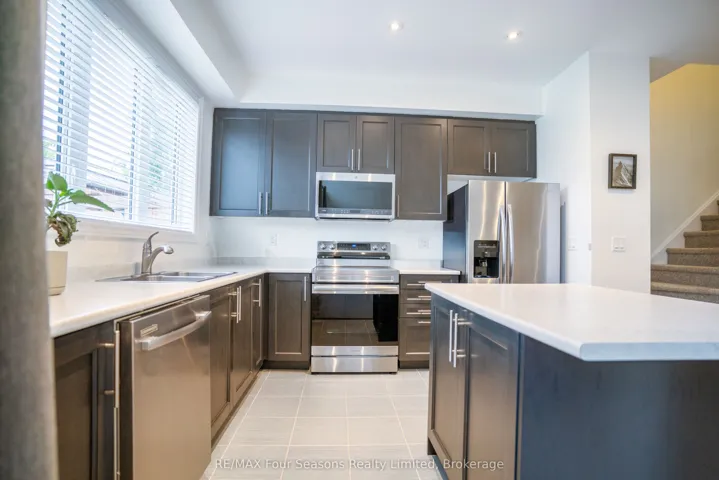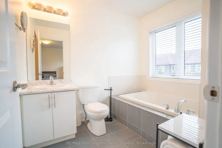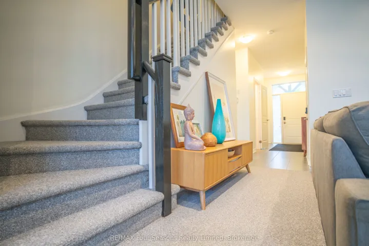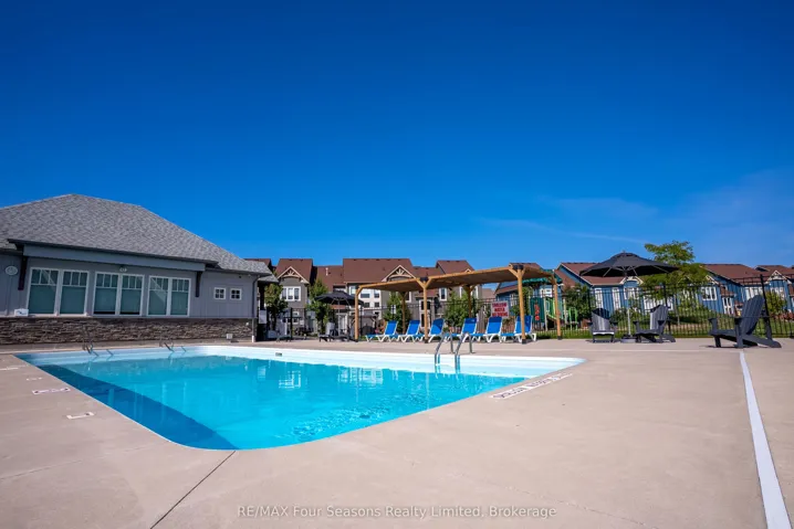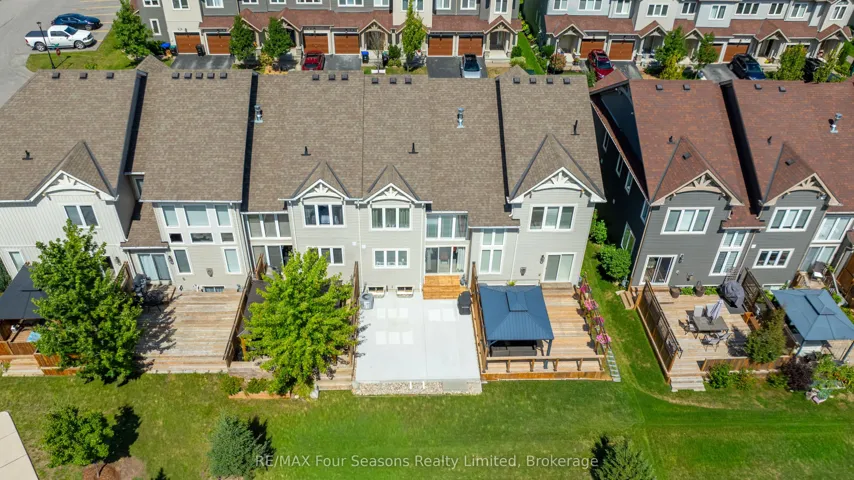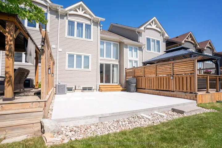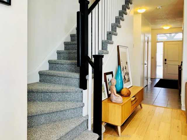 Price Drop! A fantastic opportunity to own a freehold townhouse in the Blue Fairway community conveniently located minutes away from downtown Collingwood and Blue Mountain. With 2 bedrooms and 2.5 bathrooms, this modern two-storey townhouse is perfect for a weekend vacation property or an older couple looking for a quiet and safe neighbourhood. The main entrance welcomes you with a covered porch that leads into a spacious foyer with lots of closet space, access to the attached garage and a powder room. Continuing on is the open concept kitchen and bright living room with vaulted ceilings and sliding doors to the backyard space. On the second level you will find the sizeable primary bedroom with a walk-in closet and a 4-piece ensuite offering lots of natural light. The additional bedroom is great for guests or office space with the second 4-piece bathroom ideally located next to it. You will also find the stackable washer and dryer neatly tucked away in a closet on the landing. The full size, unfinished, new framed basement presents lots of opportunity for additional storage or future living space with roughed-in plumbing already in place. Enjoy worry-free living by reaping the benefits of a townhouse that is only 7 years old with high-efficiency natural gas forced air, central air and remaining transferable Tarion warranty. This lot was originally sold as a premium lot due to its ideal location, situated just mere steps from the exclusive Blue Fairway gym, games room and the incredible heated outdoor pool. This prime location is also near the Cranberry trail and boardwalk, Cranberry golf course, White’s Bay and so much more. If you are looking to live in a community that offers a sense of peace and tranquility, then this is the home for you. Update: Owners have installed beautiful new engineered white oak hardwood flooring to the entire main floor, pictures have been added to reflect this upgrade.