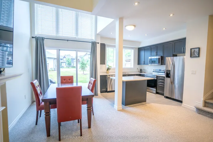 Price Drop! A fantastic opportunity to own a freehold townhouse in the Blue Fairway community conveniently located minutes away from downtown Collingwood and Blue Mountain. With 2 bedrooms and 2.5 bathrooms, this modern two-storey townhouse is perfect for a weekend vacation property or an older couple looking for a quiet and safe neighbourhood. The main entrance welcomes you with a covered porch that leads into a spacious foyer with lots of closet space, access to the attached garage and a powder room. Continuing on is the open concept kitchen and bright living room with vaulted ceilings and sliding doors to the backyard space. On the second level you will find the sizeable primary bedroom with a walk-in closet and a 4-piece ensuite offering lots of natural light. The additional bedroom is great for guests or office space with the second 4-piece bathroom ideally located next to it. You will also find the stackable washer and dryer neatly tucked away in a closet on the landing. The full size, unfinished, new framed basement presents lots of opportunity for additional storage or future living space with roughed-in plumbing already in place. Enjoy worry-free living by reaping the benefits of a townhouse that is only 7 years old with high-efficiency natural gas forced air, central air and remaining transferable Tarion warranty. This lot was originally sold as a premium lot due to its ideal location, situated just mere steps from the exclusive Blue Fairway gym, games room and the incredible heated outdoor pool. This prime location is also near the Cranberry trail and boardwalk, Cranberry golf course, White’s Bay and so much more. If you are looking to live in a community that offers a sense of peace and tranquility, then this is the home for you.