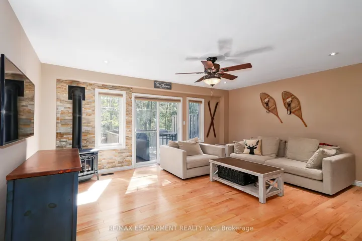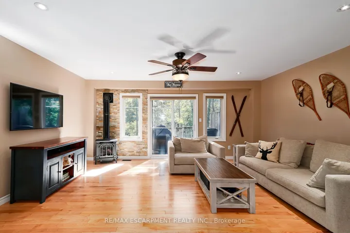 Welcome to this beautifully maintained 3-bedroom, 3.5-bath townhome, perfectly nestled in the desirable Silver Glen Preserve community. Backing onto tranquil, protected forest, this unit offers privacy and a serene setting just minutes from all that Collingwood and the Blue Mountains have to offer. Step inside to a bright, open-concept main floor featuring a spacious kitchen with a large island, and 2 gas BBQ hookups on the walk-out deck – ideal for easy outdoor entertaining. Enjoy hardwood flooring throughout the main living areas, ceramic tile in the kitchen and baths, and a cozy corner gas fireplace for chilly evenings. Upstairs, the spacious primary suite includes a private ensuite, with two additional bedrooms and a full bath completing the level. The finished lower level offers a spacious rec room and 3 pc bath. Comfort features include forced air natural gas heating, central A/C, central vacuum, and a whole-home humidifier. The deep garage with inside entry provides great storage and convenience. Silver Glen residents enjoy access to a fantastic recreation centre with a gym, party room, games room, and outdoor in-ground pool. With low condo fees, a welcoming community, and visitor parking, this home is perfect as a full-time residence or weekend chalet. Enjoy the 4-season lifestyle with Cranberry Golf Course just steps away, and easy access to ski hills, Georgian Bay, trails, and downtown Collingwood. Come live, play, and relax in Silver Glen Preserve!