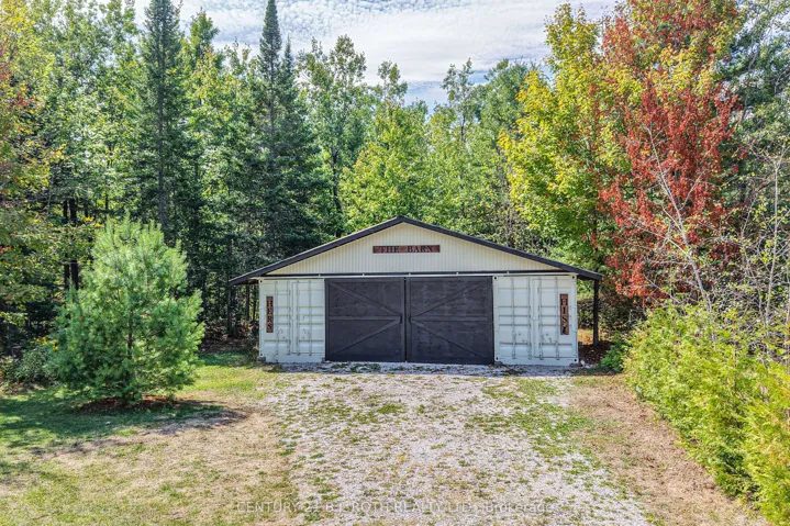Nestled on 5 private acres surrounded by mature trees, this peaceful retreat is just minutes to Washago shops, dining, and highway access. A long paved driveway leads to a well-kept raised bungalow with a durable steel roof, efficient heat pump, and full home generator for peace of mind. The bright, open-concept main level features a modern kitchen with stainless steel appliances and gas stove, flowing into spacious living and dining areasideal for everyday comfort and entertaining. With two bedrooms up, two down, and three full baths, the versatile layout suits families or multigenerational living. Outside, enjoy an impressive outbuilding large enough to house a tractor with plenty of storage. Safety and convenience are enhanced by an invisible dog fence, Night Owl security cameras, and a built-in fire escape from the back deck. A welcoming neighbourhood and the perfect balance of comfort, safety, and nature.