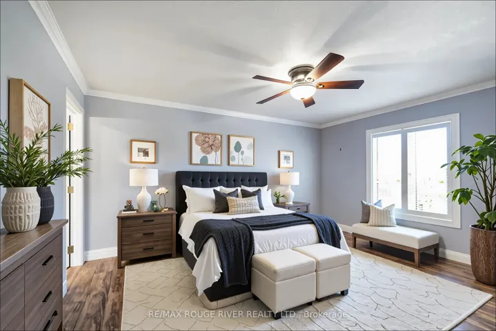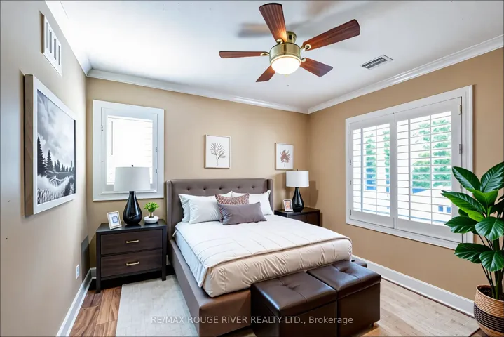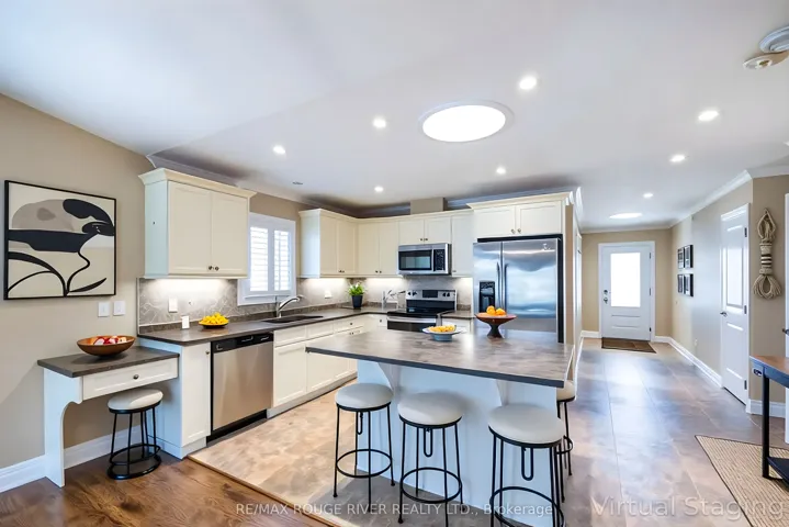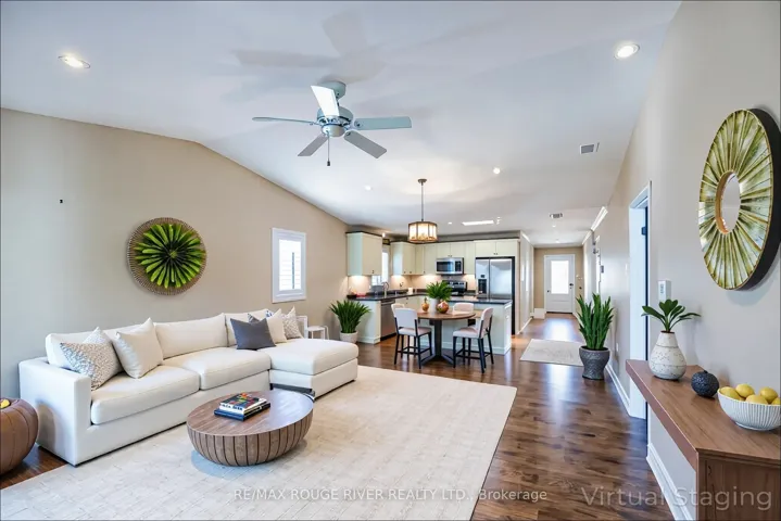 Welcome Home!! To This Beautifully Laid Out Open Concept Bungalow Located In The Popular Adult Community Of Founders Village!! This Land Lease Community Rests In A Very Quiet And Tranquil Area Of Wasaga Beach! The “Moonstone B” Model Has 2 Spacious Bedrooms And 2 Bathrooms! You Will Adore The Open Concept Main Living Space With Vaulted Ceilings, Updated Flooring, And Big Bright Windows All With California Shutters! Enjoy Peaceful Afternoons, Bug Free In The Enclosed Back Deck! This Gorgeous Community Is Part Of 115 Acres Of Forest And Wilderness Mere Minutes From The Sprawling Shores Of Wasaga Beach! Numerous Amenities In The Neighbourhood Include A 12,000 Sq Ft Recreational Complex, Indoor Salt Water Pool, Games Room, Wood Working Shop and More!! This Neighbourhood Is Private Yet Still Ideally Located Within Minutes From The Beach, Shopping, Marlwood Golf Course, Restaurants, Trail System And Other Amenities!! Monthly Land Lease Fee: $800.00, Site Taxes: $58.42, Structure Taxes: 145.66. Total: 1005.08/ Month