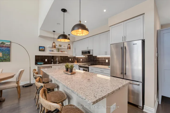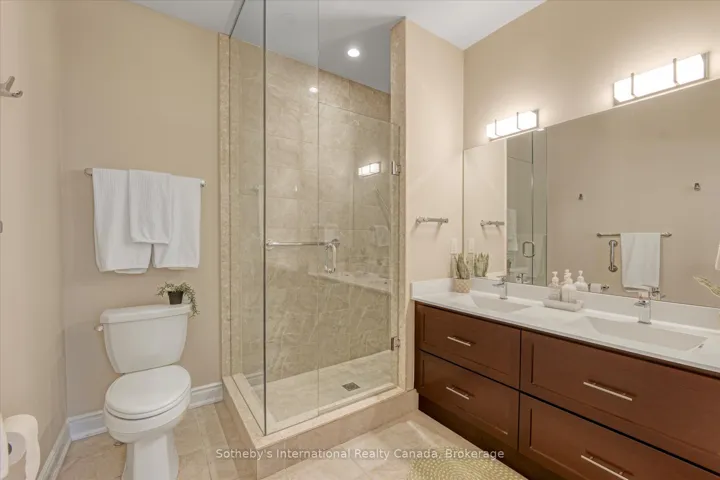 Interested in an option for main floor living? Aging in place? Welcome to your next chapter in the heart of Collingwood’s sought-after Shipyard’s community— the lifestyle and location will check all your boxes. Just steps from the sparkling shores of Georgian Bay and minutes from vibrant downtown shops, cafes, and trails, this beautifully appointed bungalow offers the perfect blend of comfort and convenience and the option for main floor living. The home boasts 1300 square feet on the main floor, plus an additional 450 square feet of finished space below + 700 sq ft unfinished! The main living area is bright and airy, featuring vaulted ceilings and a striking floor-to-ceiling fireplace that anchors the open-concept layout. A wall of windows draws in abundant natural light and the space provides convenient access to your private back deck ideal for quiet mornings. BBQ’s and entertaining friends. Both front and rear entrances allow for easy flow throughout the home. The chef’s kitchen is sure to impress, with gleaming granite countertops, a spacious 8 ft central island, and a layout designed for those who love to cook and host. The kitchen flows effortlessly into the living and dining area, creating a modern, sociable atmosphere. Main floor living is elevated with two spacious bedrooms each with its own ensuite, walk in closets and large windows fitted with custom blackout blinds for added comfort and privacy. 2nd bedroom/office has water views! Downstairs, you will find a fully finished space that is perfect as a family room, home office, or even a third bedroom, complete with a full 4-piece ensuite. An additional large, unfinished room offers plenty of storage, the opportunity to have your own workshop or expand your living space even further. A private two-car garage featuring an inside entry.Other thoughtful upgrades include remote-controlled upper window in grand room and black out blinds and enhanced soundproofing in select rooms.