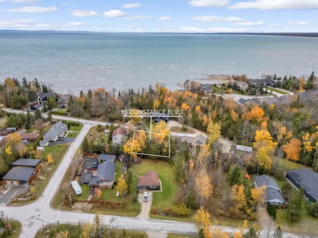 Incredible opportunity to build in a quiet, coastal pocket of Wasaga Beach, just steps to Georgian Bay! Welcome to 15 Constance Blvd, offered for the first time in over 55 years. This beautifully wooded property sits north of Beachwood Road on a peaceful stretch of Constance Blvd, surrounded by mature homes and nature. This irregular treed lot offers generous dimensions with approx. 98 ft of frontage, 126 ft depth on the west side, 106 ft depth on the east side, and 91 ft across the rear. Providing flexibility for a thoughtful custom build while maintaining natural privacy. Municipal water, sewer, and hydro are available at the lot line, making planning and development more convenient. Minutes to Collingwood, trails, beaches, golf, skiing, and the relaxed Georgian Bay lifestyle. A rare chance to secure vacant land in a growing area of Wasaga Beach. Buyer to verify zoning, building envelopes, setbacks, and development charges. A quiet setting, steps to the Bay, and endless potential, your vision starts here.