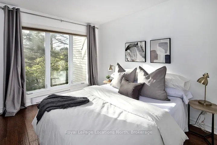 Bright & Private Condo Near The Blue Mountains! Discover this well appointed 2-bedroom, 2-bathroom condo ideally located just minutes from the ski hills of The Blue Mountains, downtown Collingwood, and the shores of Georgian Bay. Surrounded by mature pine and spruce trees, this home offers the perfect blend of natural light and privacy. Inside, large windows fill the open-concept living space with sunlight, while the natural gas fireplace adds warmth and charm. The kitchen and living room flow seamlessly, creating an inviting space for entertaining or relaxing after a day on the slopes. Two updated sliding glass doors lead to a spacious upper-level patio – perfect for enjoying outdoor living in the warmer months. The upper level is dedicated to a serene primary suite, featuring a bright 4-piece ensuite, oversized windows, and a skylight that bathes the room in natural light. The convenient laundry room includes a brand new stackable washer and dryer. Whether you’re looking for a full-time home, weekend getaway, or investment property, this condo offers the ideal Collingwood lifestyle – close to nature, recreation, and everything the area has to offer. Reach out to Maggie or myself today to book your personal viewing and experience it for yourself!