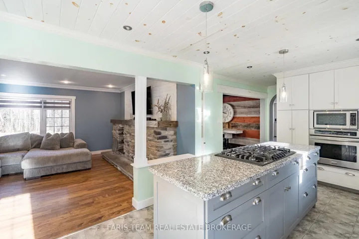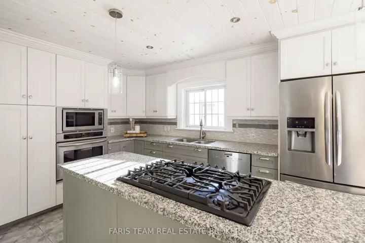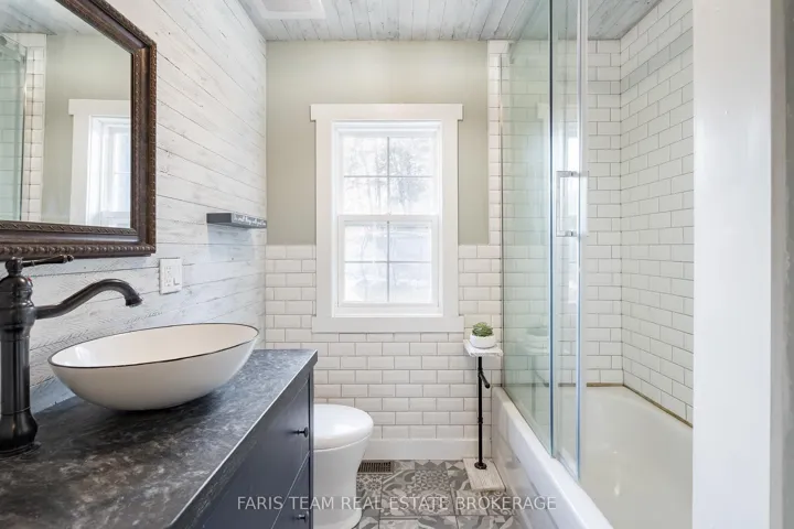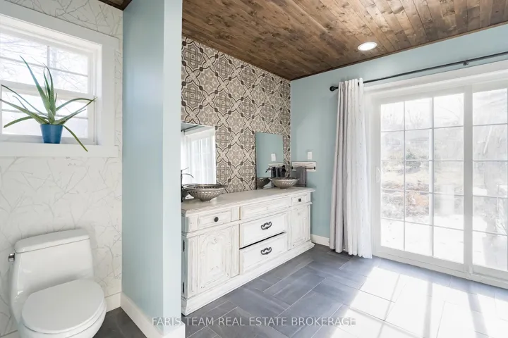 Top 5 Reasons You Will Love This Home: 1) Step inside to discover recently renovated, spa-like bathrooms, including a primary ensuite featuring a sleek freestanding soaker tub, a modern black-grid glass shower set against classic subway tile, and high-end vanity stations with vessel sinks, providing a true daily escape 2) Bright updated kitchen boasting attractive two-tone cabinetry, a functional island workspace, and durable tiling, opening directly into the adjacent dining area which features an eye-catching accent wall and access to the yard, perfect for hosting and family gatherings 3) Enjoy custom design elements throughout, including a warm plank wood ceiling in the kitchen and dining area, a decorative ceiling in the main bedroom, and a variety of stylish wallpaper accents that give the home a distinctive and high-end personality unlike any other 4) Comfortable family room anchored by a gorgeous, rustic stone fireplace and a chunky wood mantel, while high-quality hardwood floors span the living area, creating a warm, comfortable, and durable setting ideal for relaxation and spending time together 5) Located just 5 minutes from Penetanguishene for unparalleled convenience, the property sits on a spacious lot of almost 1-acre, offering desirable privacy, room for expansion, and access to the area’s natural amenities like Georgian Bay and local trails. 2,301 above grade sq.ft. plus a finished basement.