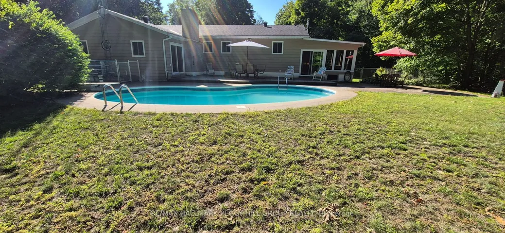 34-ACRE COUNTRY RETREAT WITH AN INGROUND POOL, IN-LAW POTENTIAL & LIMITLESS POSSIBILITIES! Set on an incredible 34-acre property surrounded by towering trees and peaceful natural beauty, this sprawling bungalow offers true country living with endless room to roam, complete with manicured trails perfect for walking, biking, or snowmobiling. Embrace a lifestyle defined by nature and tranquillity, just minutes from Georgian Bay’s beautiful beaches, local parks, and a grocery store, with Wasaga Beach only 15 minutes down the road. The property makes an unforgettable first impression with a circular driveway offering parking for more than 20 vehicles, a detached double garage, multiple sheds, and plenty of space for a future shop. The expansive backyard features an inground pool surrounded by a generous patio, perfect for outdoor entertaining or quiet relaxation. Over 3,200 finished square feet, including more than 1,850 on the main level, provide an abundance of living space for families, multi-generational living, or those dreaming of a country retreat. The large kitchen features white cabinetry, built-in appliances, a centre island, and an open connection to the formal dining room, making it ideal for hosting gatherings. The bright living room overlooks the treed front yard, while the family room features a cozy wood fireplace and a walkout to the backyard. A separate sun-filled hot tub room with a fireplace offers an additional sliding door walkout leading to the pool and patio area. The finished basement extends the possibilities with in-law potential, complete with a second kitchen, living room, den, rec room, two bedrooms, and a full bathroom. Whether you envision a peaceful family haven, a multi-generational escape, or simply a property with room to grow, this exceptional #Home To Stay is filled with opportunity and ready for your personal touch to make it truly yours!