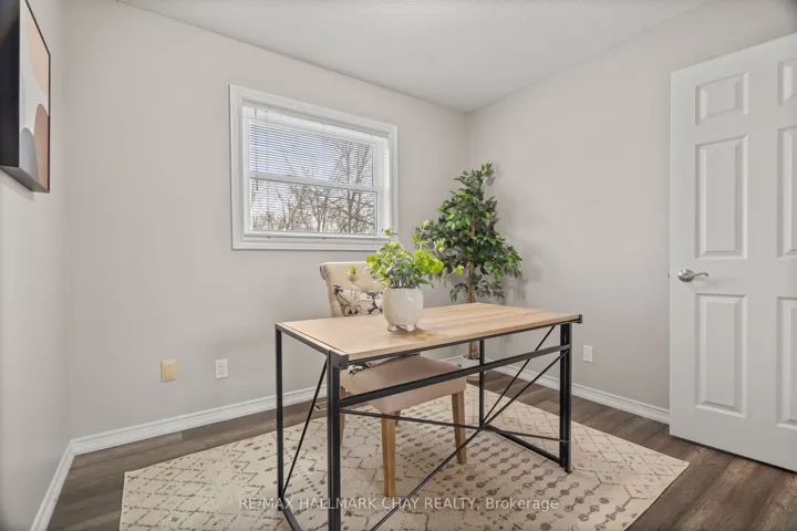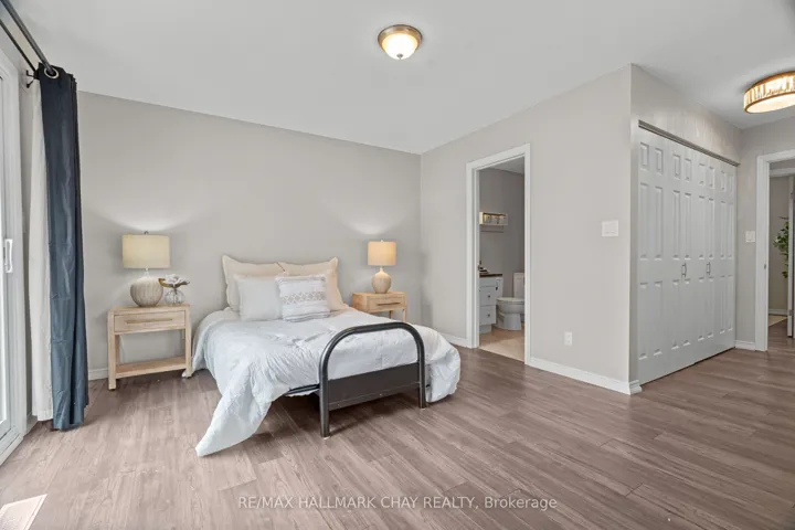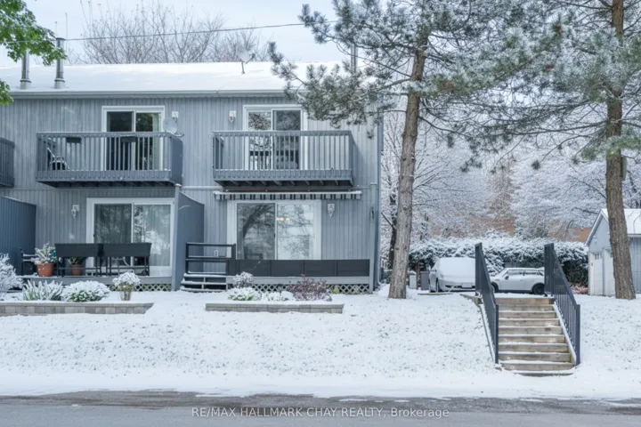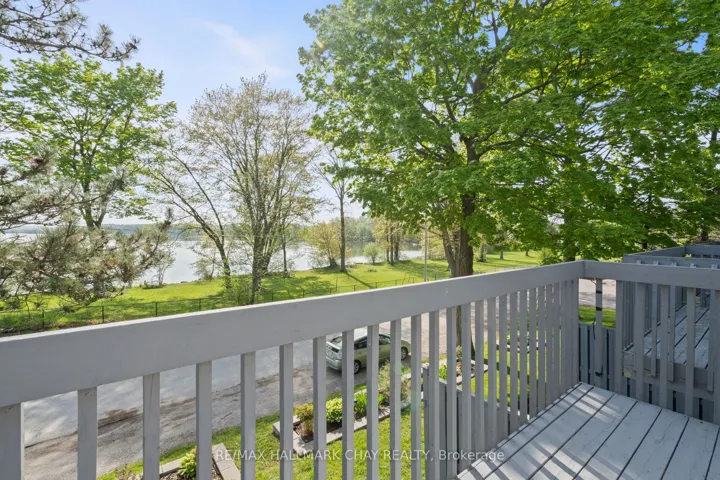 Welcome to this beautifully upgraded end-unit waterfront townhouse condo-a perfect retreat for professionals, young couples, downsizers, or those seeking a peaceful getaway. With views of Lake Simcoe, over $100,000 in thoughtful renovations, and a low-maintenance lifestyle, this move-in-ready home is as serene as it is sophisticated.Step inside to a spacious foyer with custom closet organizers, setting the tone for the clean and well-designed layout throughout. The chef-inspired kitchen was fully remodeled in 2017 and features granite countertops, sleek ceramic flooring, stainless steel appliances, and a functional breakfast bar with bonus storageideal for both everyday meals and entertaining.The open-concept living and dining space is equally impressive, with newer vinyl flooring, a cozy wood-burning fireplace, and sliding doors that lead to your private deck. Out back, enjoy peaceful mornings or stunning sunset views under your electric awning, surrounded by raised flower beds and a secure gated enclosure for added privacy.Upstairs, both bedrooms have been enhanced with new laminate flooring, and the renovated main bathroom brings spa-like tranquility to daily routines. The primary suite offers an electric fireplace, in-suite laundry, a fully renovated ensuite bath, and a private balcony with western lake views-imagine waking up to the water every morning.The fully finished lower level provides even more space to unwind, with a large rec room finished with hardwood floors, a third full 3-piece bathroom, and extensive built-in cabinetry for smart storage solutions. The attached garage includes a generous mezzanine loft, perfect for seasonal or hobby storage.Set in an exclusive 9-unit waterfront complex, this home is directly across from Kitchener Park25 acres of green space, tennis courts, a dog park, and scenic walking trails. You’ll also love being close to marinas, shopping, downtown Orillia, and Casino Rama.