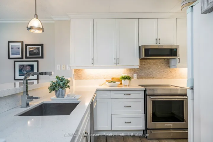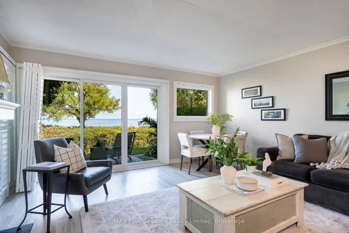 Welcome to The Cove in Collingwood-where spring brings new energy to the shoreline and Georgian Bay becomes your everyday backdrop. This rarely offered end-unit, 3-bedroom ground-floor condo is perfectly positioned to capture sweeping, unobstructed waterfront views, with walkouts from both the living room and primary bedroom to a private patio. Enjoy your morning coffee with the sunrise and unwind in the evening as the sky reflects across the bay-every window framing a view that truly feels like art. Inside, the condo has been thoughtfully updated with modern appliances, two beautifully refreshed bathrooms, and a cozy gas fireplace that adds warmth on cooler spring evenings and throughout the seasons. Designed for easy living, the property also offers private beach access, convenient kayak and bicycle storage, and the peace of mind of major exterior upgrades already completed. Bell Fibre TV and unlimited high-speed internet are included in the condo fees, making working from home seamless and reliable. Located just minutes from downtown Collingwood, you’re perfectly situated to enjoy boutique shopping, exceptional dining, golf courses, ski hills, and scenic trails. Whether it’s paddle boarding in the warmer months, cycling along the Georgian Trail, or simply soaking in the views, this is a true four-season lifestyle. Fresh, inviting, and move-in ready-this is waterfront living at its best.