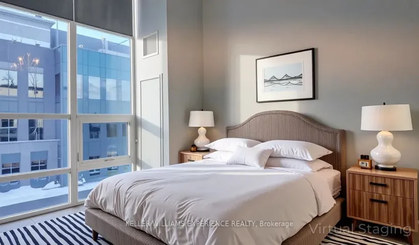 Experience elevated lakeside living in this stunning Grand Penthouse overlooking Lake Simcoe and Kempenfelt Bay. This spacious 2-bedroom + den, 2-bathroom suite blends luxurious design with everyday comfort, offering unobstructed west-facing views and a lifestyle that’s just steps from Barrie’s vibrant downtown, waterfront trails, fine dining, and boutique shopping. Inside, the bright open-concept layout impresses with 10-foot ceilings and floor-to-ceiling windows dressed in custom blinds, filling the space with natural light. The great room flows seamlessly to a large south-facing terrace, perfect for entertaining or simply enjoying sunset views. The primary bedroom includes a private balcony and a beautifully upgraded three-piece ensuite with a walk-in shower, modern vanity, and fresh new fixtures. The modern kitchen features stainless steel Whirlpool appliances, neutral cabinetry, white quartz countertops, and a stylish backsplash, complete with a gas hookup and a water line to the fridge. Both bedrooms are generously sized, and the den adds versatility as a home office, guest area, or cozy lounge. Additional highlights include in-suite laundry with custom shelving, an extra-large storage locker, and ample closet space throughout. Utility costs for 2025 totaled just $490.89 for water and hydro, with heating and cooling provided by a highly efficient heat pump system. Enjoy the convenience of underground parking, bike storage, and high-quality building amenities, including a fitness center, party room, and a third-floor outdoor terrace with a BBQ area. Affordable luxury, panoramic lake views, and a prime downtown address-this rare penthouse opportunity in Lakeview Condos is not to be missed.