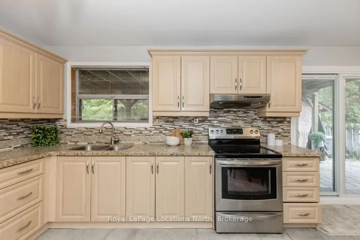 Steps to the lake from this spacious, all-brick raised bungalow on a 50′ x 142′ lot, this family home with built-in income potential. Built in 1991 and offering 2,237 sq ft, total square feet, main level features 3 bedrooms, a full bathroom and an open-concept living, dining, eat-in kitchen with low-maintenance ceramic floors and some updated kitchen features. The main kitchen walks out to a 30′ x 8′ deck overlooking a private backyard patio with storage shed. Hardwood stairs lead to the lower level with interior garage access (ideal for a separate entrance) where you’ll find a second kitchen with granite counters, stainless steel appliances, a cozy living room with a wood-burning fireplace, a full bathroom, laundry and a brand-new sliding door with walkout to the backyard which is perfect for a second rental unit or in-law suite. Updates include a newer furnace, gutter guards and hot water tank; roof is approx. 12 years old. Extras: 1-car garage, central air, forced-air gas heat, parking for 6+ cars, partial fencing and an outdoor shed. Quiet street, quick walk to the beach, and close to shopping, restaurants and highway access, beach living with flexible living options. Collingwood is less than 10 minutes away, Ski hills are 20 minutes away and quick access to highway 26 to get to Barrie or T.O.