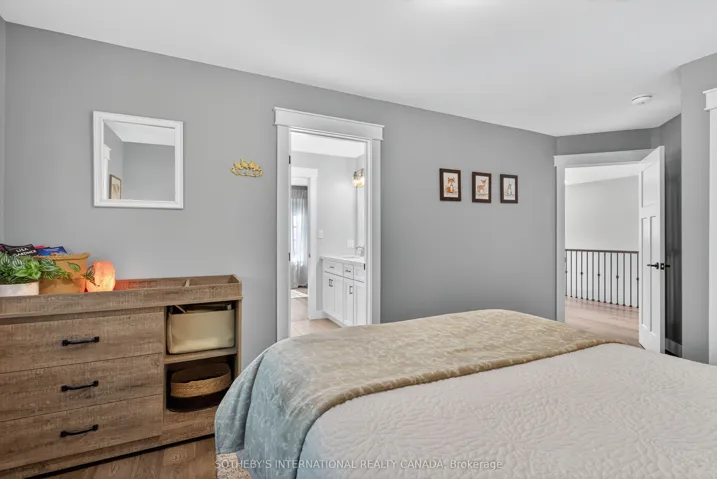 Welcome to This Stunning Custom-Built Craftsman-style Home, Located on a Quiet, Private Tree-Lined Lot with no Rear Neighbours and Deeded Access to the Pristine Shores of Georgian Bay just Steps Away. This Thoughtfully Designed Family Home Offers 2,429 SF of Total Living Space , a Fully Finished Basement, Combining Comfort, Quality, and Style Throughout. Inside, You’ll Find 3 Spacious Bedrooms, 2.5 Bathrooms, and a Bright, Open-Concept Main Floor with Hardwood Flooring, Pot Lights, and 9-ft ceilings Throughout. The Custom Chef’s Kitchen Features Quartz Countertops, a Large Centre Island with Plenty of Storage, Stainless Steel Appliances, Soft-Close Cabinetry, and Tiled Backsplash. Walk Out to a 400 sq. ft. Deck Overlooking a Mature Treed Yard, Fire Pit, and Custom Shed, Offering Privacy and Seasonal Water Views. Upstairs Includes a Versatile Loft/Reading Nook, Second-Floor Laundry Room with Custom Wood Counter and Storage. Serene Primary Suite with Walk-in Closet and a Spa-like Ensuite featuring Waterfall Shower and Wood-Accented ceiling. The Additional Bedrooms are connected by a Jack & Jill bathroom with a Large Quartz Vanity and Dual Sinks. Finished Basement Offers a Cozy Rec space with Shiplap Electric Fireplace, Egress Windows, and an Efficient Utility Room Complete with a Workbench, Storage Shelving, HRV system, Water Softener, and separate panels for the Home and Utilities. Garage Features Extra-tall ceilings and a Dedicated Workshop Area, Perfect for Storage, Tools, or Hobbies. Just minutes from downtown Penetanguishene, marinas, shops, parks, and Georgian Bay beaches, this home is a rare offering that blends modern living with natural beauty.