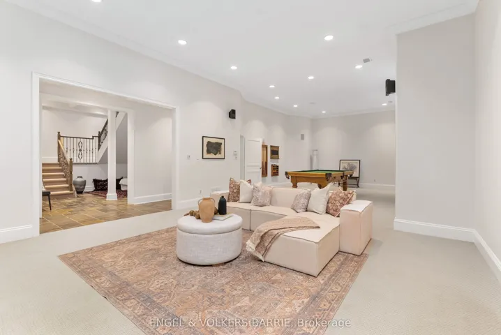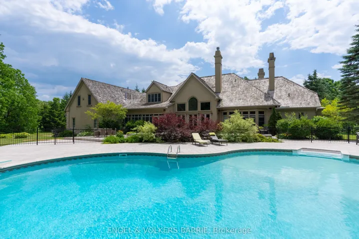 Welcome to one of Midhurst’s most prestigious addresses – Midves Court. This custom built estate sits on nearly 2 acres of private, landscaped grounds with a circular driveway, triple garage, and over 8000 sq ft of luxurious living space. Designed with elegance and function in mind, the home features 5 beds, 6 baths, and high-end finishes throughout. The main floor includes a spacious great room with soaring 20+ ft vaulted ceilings and a grand wood burning fireplace – one of five throughout the home. The chefs kitchen boasts Thermador appliances, granite counters, and an oversized island, all open to a bright family room with full height windows. A formal dining room, private office with gas fireplace, and stunning entryway with curved staircase and additional second staircase complete the main level. The main floor primary suite offers comfort and accessibility, with large windows, a walk-in closet with custom millwork, 5-pc ensuite with jacuzzi, and direct walkout to the backyard and pool. Upstairs are 3 spacious bedrooms, each with ensuite bathrooms and large closets, including a second primary suite with dual closets and a fully renovated spa bath. A rare upper level lounge provides a perfect hangout for kids or guests. Enjoy indoor-outdoor living with approx.1500 sq ft of decking, multiple seating areas, BBQ gas line, and a resort style saltwater pool with waterfall, retaining wall, and pool house. The yard includes a fire pit, expansive lawn, and space for a future tennis or sports court – framed by mature trees and gardens for total privacy. The finished lower level impresses with 12-ft ceilings, a games area, gym with mirror and padded flooring, full bath, and abundant storage. Additional features include fresh paint throughout, hardwood upstairs, epoxy garage floors, UV and reverse osmosis water filtration, Sonos sound, and a full security system. A rare offering in the heart of Midhurst, minutes to Barrie, hwy 400, top rated schools and all amenities.