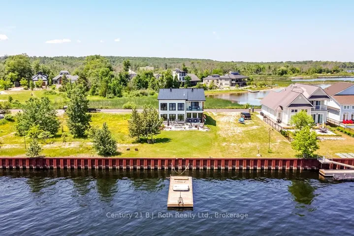 Welcome to Port Mc Nicoll’s best – kept secret, Exclusive community, serene peninsula on Georgian Bay, offering an unparallel waterfront living. This stunning 4 bedroom, 3 bathroom home is nestled within an intimate prestigious neighborhood, where tranquility meets modern elegance. With only a handful of homes, surrounding you privacy and breathtaking water-views from every window are yours to enjoy. Modern black framed windows and stone exterior. Step inside this meticulously maintained 4 yr old home and experience abundance of light and open space. The Livingroom is a true masterpiece boasting 20ft high ceilings, with intricate coffered ceiling and recessed pot lights, creating a grand inviting atmosphere. With 9ft ceilings throughout the main. The ensuite is a luxurious retreat offering double sinks a separate soaker tub a beautiful glass tiled shower. Every corner of this home radiates comfort and class with high end features. A cold room in the basement, a heated garage and professionally installed pavers on both the driveway and backyard patio. Outside your 10X34 ft private dock sits in deep water. Perfect for enjoying a morning coffee or stepping out for an afternoon of boating and water activities. The expansive backyard is an entertainers dream, with a multi-colored LED pot lights adding a touch of magic to your outdoor gatherings. This exceptional home is not just a residence it’s a lifestyle, your very own paradise awaits.