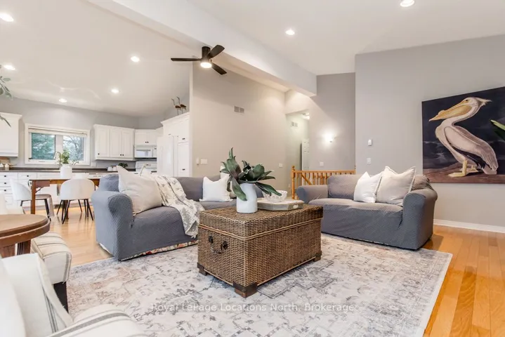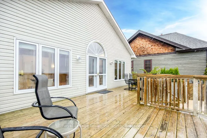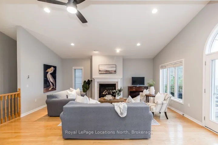 Welcome to a true Georgian Bay waterfront retreat, where unobstructed water views deliver unforgettable sunrises, sunsets, and year-round scenery. Built in 2002, this 4-bedroom, 3-bathroom bungalow was intentionally designed to maximize panoramic bay and Blue Mountain views from the main living areas. Perfectly positioned between Collingwood and Wasaga Beach, the location offers peaceful waterfront living with quick access to skiing, trails, dining, shopping, and four-season recreation.The covered front porch sets the tone – ideal for morning coffee or watching summer storms roll across the bay. Inside, the open-concept main floor is filled with natural light, vaulted ceilings, and a cozy gas fireplace anchoring the living space. The spacious kitchen offers generous counter space and storage, making it ideal for entertaining family and guests while enjoying water views.The main-floor primary suite provides a private retreat with a 4-piece ensuite, including a soaking tub, glass shower, and walk-in closet. The lower level features two additional bedrooms and a large rec room, creating flexibility for family living, guests, or cottage use.Outdoors, enjoy tiered decks, mature landscaping, and direct private waterfront access-perfect for swimming, kayaking, paddle boarding, or relaxing by the water. Whether used as a full-time residence or waterfront cottage, this home captures the essence of the Georgian Bay lifestyle: tranquil, active, and deeply connected to nature, with winter skiing and summer water sports at your doorstep.