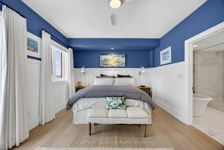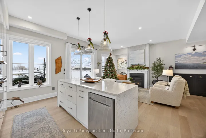 Magnificent luxury waterfront residence in downtown Collingwood’s sought-after Shipyards community – this is a rare offering! Built in 2021, this stunning 3-storey plus basement townhouse features expansive views of Georgian Bay and the Collingwood grain terminals from walkout patios on all three levels. Spacious and thoughtfully designed, the home offers 3,200 sq ft of finished living space across 4 floors, with 3 bedrooms, 3 full bathrooms, 2 half bathrooms, and a private in-home elevator servicing all floors. The primary suite is breathtaking, featuring a private balcony walkout, elegant wainscoting, a large walk-in closet, and a stunning ensuite with double vanity, glass shower, and a standalone soaker tub. The bright chef’s kitchen boasts high-end stainless steel appliances and a large 4-stool waterfall island, offering ample storage and an ideal space for entertaining, while overlooking the cozy living room with a gas fireplace – again, with abundant views of Georgian Bay. The upper family room is complete with impressive wall-to-wall built-in cabinetry, housing a wet bar and a Sub-Zero wine fridge with multiple temperature zones. 2 rooftop terraces provide incredible outdoor spaces to enjoy sunrises over Georgian Bay and sunsets across the ski hills and escarpment. The finished basement adds versatility with a full bathroom and a luxurious glass-enclosed steam shower, with the elevator providing seamless access from bottom to top. Perfectly positioned right on the water, step outside to enjoy boating, kayaking, paddle boarding, or sailing, stroll along the harbour walkway, and take advantage of being just steps from downtown Collingwood. Enjoy easy walking access to shops, restaurants, the LCBO, and groceries, while remaining a short drive to ski hills, golf courses, hiking trails, and beautiful beaches. This is truly one of Collingwood’s most sought-after waterfront lifestyles.
