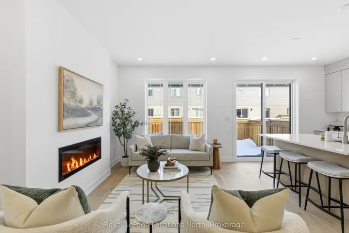 Introducing an exceptional new townhouse by award-winning Sunvale Homes, thoughtfully designed to highlight light, warmth, and natural textures. The main floor offers a flowing, open layout that feels both spacious and inviting. The kitchen is a chef’s dream, featuring quartz countertops, stainless steel appliances, and a large island perfect for meal prep or casual gatherings. Just off the kitchen, the living room creates a cozy yet sophisticated space, anchored by an electric fireplace that make it ideal for relaxing or entertaining. The dining area, positioned adjacent to the living room, provides ample space for family meals or dinner parties. Upstairs, a custom staircase in warm white oak leads to a thoughtfully arranged second level. The primary suite is a serene retreat, with a sun-filled bedroom, walk-in closet, and a spa-inspired ensuite boasting a double white oak vanity, quartz countertops, and a glass-enclosed shower with striking green tiles. Two additional bedrooms, a chic 4-piece bath, and convenient upper-level laundry complete this level. With its nature-inspired design, abundant natural light, and elevated finishes, this home presents a fresh, modern take on luxury living. The backyard is fully sodded and fenced, (deck not included) with front landscaping and driveways scheduled for summer completion. Fully enrolled in the Tarion warranty, this is the Forest Model. Common element fee: $186.62.