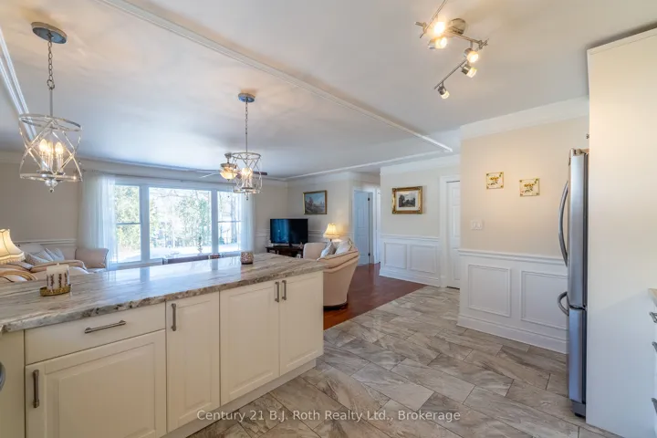 Beautifully maintained 3-bedroom brick bungalow situated on a meticulously landscaped 68′ x 125′ lot in the highly desirable North Ward neighbourhood. From the moment you enter, you’ll appreciate the bright, open-concept main floor designed for comfortable everyday living and entertaining. The spacious living area features gunstock hardwood flooring, custom trim and large picture windows that flood the space with natural light and offer views of the private backyard. The updated kitchen is both functional and stylish, complete with ample cabinetry, breakfast bar seating, porcelain tile flooring and stainless steel appliances. Three bedrooms on the main floor feature original hardwood flooring and are served by an updated 4-piece bathroom. The fully finished basement offers exceptional additional living space and excellent potential for in-law or multi-generational living with its separate exterior access. Renovated to the exterior walls, waterproofed and foam insulated, this level provides a warm, dry and comfortable environment year-round. The lower level includes a large family room with gas fireplace and custom surround, wet bar, recessed lighting, office or games area, and a spacious, beautifully updated laundry room. The luxurious lower-level 4-piece bathroom features a walk-in tiled shower, in-floor heating and double vanity. Extensively renovated over the past 10 years, this home offers peace of mind with major upgrades including electrical panel, plumbing, on-demand hot water system, gas furnace, central air conditioning and updated ductwork, along with quality custom trim throughout. Outdoor living is equally impressive with updated decking, a 14′ x 12′ gazebo, covered BBQ area and unistone patio-perfect for relaxing or entertaining. Ideally located within walking distance to Lake Couchiching and downtown Orillia, and close to shopping, golf, pharmacy and everyday amenities. Single Garage & widened driveway w/updated walkway to front door.