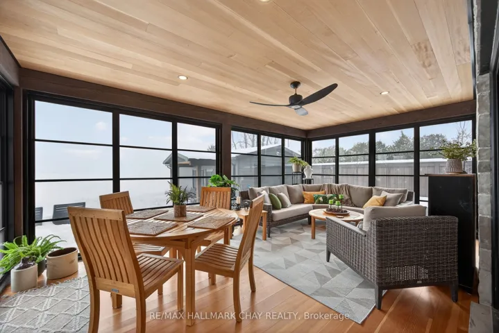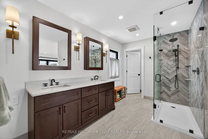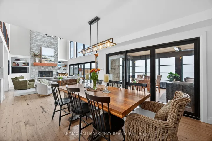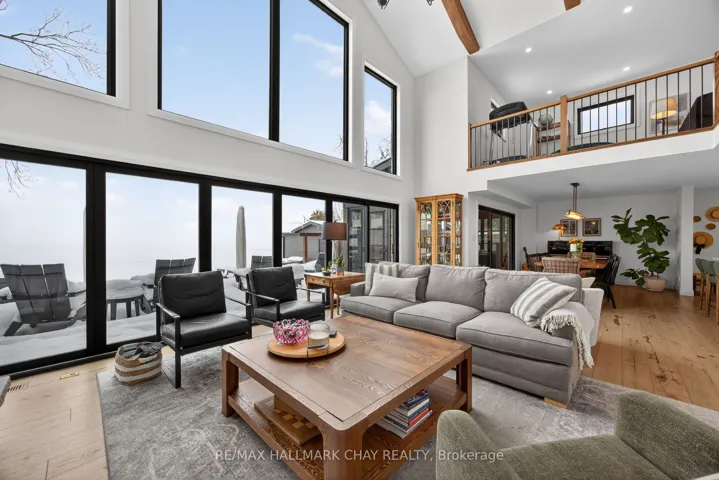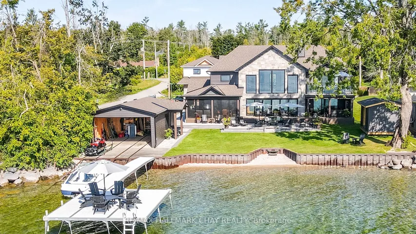 Exceptional south-facing lakefront estate offering 4370 sq ft of fully renovated living on 100′ x 194′ of flat, steel-pile protected shoreline. Breathtaking water views from nearly every room. Luxury waterfront just 15 minutes from Barrie or Orillia.Thoughtfully redesigned in 2023, features two spectacular Primary Bedrooms, 1 main floor & 2nd upstairs – each with ensuite bathrooms, heated floors, separate water closets, walk-in closets, floor-to-ceiling windows opening to private Lakeview decks. The lower suite offers covered deck hot tub access, while the upper suite features a glass railing deck. The 3rd spacious upper bedroom could be split into 2, has 5 pc ensuite & heated floors. House designed for a fifth bedroom/office or fitness space upstairs, easily converted. The Show-Stopping Great Room has floor-to-ceiling glass, ceiling wood beams, Napoleon wood-burning fp w/ Owen Sound stone and custom built-in cabinets. Hardwood flooring throughout w/ luxury carpet in bedrms. The chef’s kitchen offers water views, Bosch Wall Oven & Microwave, gas range, custom cabinetry, Quartz countertops & backsplash, large island for six, and dedicated coffee bar. Enclosed 3 season Sunroom with Douglas Fir floors & ceiling, Sun-Tek windows/screens, room for sitting and eating area. Inside entry from garage into family sized mud/ laundry room, dog wash & powder room. Amenities continue: UV water system, whole-home generator, automated irrigation and lighting, new septic system, lakeside patio & fire pit, dry double boathouse with dual railways, workshop, storage for water toys, new 60′ dock with huge seating area. A 2-storey Detached heated/air-conditioned garage built to fit a golf simulator, second story for 5th bedroom or games room. 21′ Bow-rider boat included. Refined waterfront living at its absolute best – impeccably renovated, thoughtfully designed, and built for unforgettable moments on the water. Homes of this calibre, condition, and location are rarely offered.