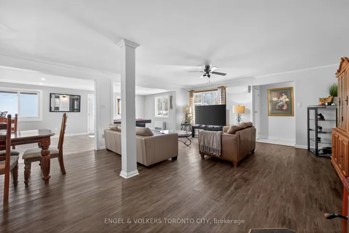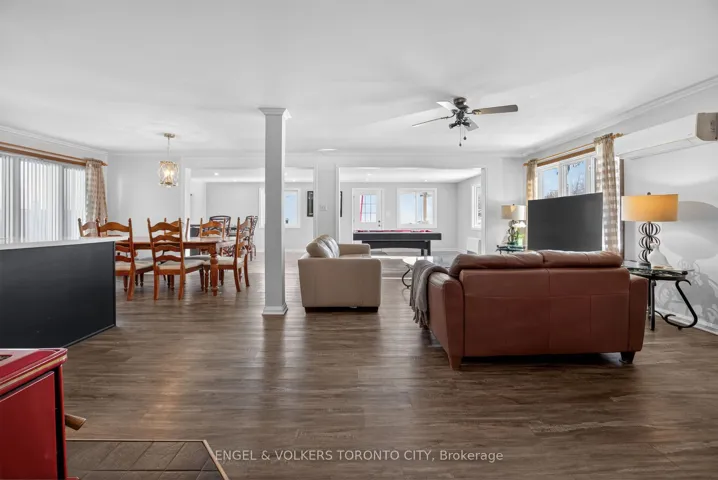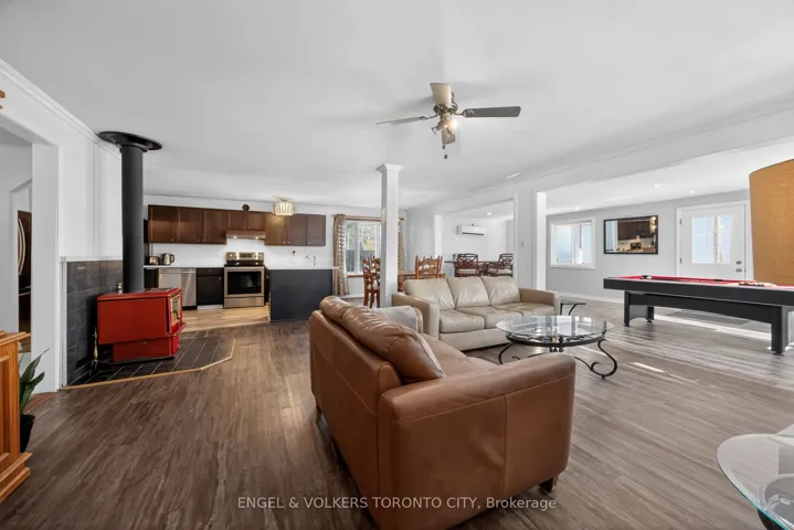Welcome to this beautifully updated, furnished bungalow nestled on a quiet, private riverfront setting along the Black River. This inviting home offers a well-designed layout with a new addition that enhances both space and functionality, creating a comfortable environment for everyday living and entertaining.UPDATE since photos: the main living space now include 24 pot lights & matching consistant flooring.The renovated kitchen showcases quartz countertops, stainless steel appliances, and a double stainless steel sink, seamlessly flowing into the open-concept living area. Durable vinyl flooring, crown moulding, neutral finishes, and large windows fill the home with natural light. The living room features a cozy wood-burning stove, providing both charm and supplemental heating.The primary bedroom serves as a relaxing retreat, while the outdoor space truly sets this property apart. Enjoy peaceful views from the new, expansive deck, unwind in the barrel sauna, or take advantage of direct access to the river – with dock included! Mature trees surround the property, offering exceptional privacy and serene natural surroundings, with no neighbours directly across the river. Additional features include a metal roof, municipal water connection, fibre internet, and ample parking with a metal carport + concrete pad. and oversized driveway. Conveniently located near Highway 11, County Road 169, schools, parks, a community centre, and local amenities, this riverfront property offers a rare opportunity to enjoy a tranquil lifestyle without sacrificing accessibility. A special place to call home.