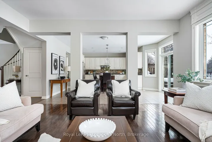 Welcome to one of Mair Mills’ most exceptional offerings, where refined executive class living meets an excellent setting. Ideally located between the Blue Mountains and downtown Collingwood, this executive all-brick home sits on a rare, south-facing 1/2 acre lot backing directly onto the Blue Mountain Golf & Country Club. This property delivers sun-filled views, privacy, and a sense of calm that is increasingly hard to find. Tucked away on a quiet no-thru street in a neighbourhood celebrated for its safety, green spaces, playgrounds, and tennis courts, this is a location families actively seek out and seldom leave. Offering over 4,000 sq ft of finished living space, this 5-bedroom, 5-bathroom residence showcases quality craftsmanship and timeless finishes throughout. The main living area is anchored by a stunning great room and chef’s kitchen featuring custom built-ins, solid wood cabinetry, stainless steel appliances, a 10-foot quartz island, butler’s pantry, and formal dining room-perfectly designed for both entertaining and everyday luxury. Unwind by the fireplace while enjoying sweeping south-facing golf course views. The primary suite is a true retreat with a spa-inspired ensuite including a soaker tub, separate shower, luxury finishes, and an oversized walk-in closet. The fully finished lower level adds versatility with a dedicated theatre room, spacious recreation area with electric fireplace, and a private bedroom with ensuite, ideal for guests or extended family. One of the largest and most private lots in Mair Mills, the backyard offers endless potential for a custom outdoor oasis. Minutes to skiing, golf, Georgian Bay, trails, and Collingwood’s shops and dining, this home delivers an unmatched four-season lifestyle in a setting that rarely becomes available.