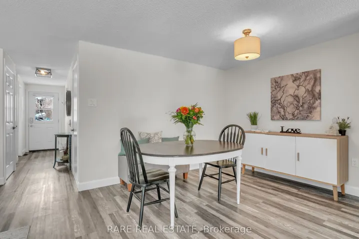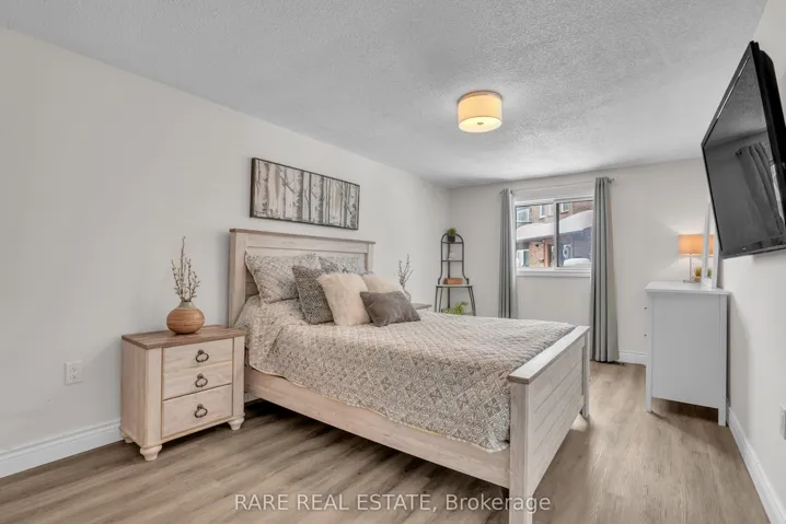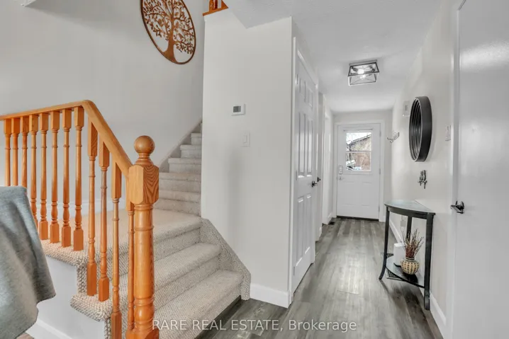 Welcome to this beautifully updated move in ready home offering quality finishes from top to bottom. 4 bedrooms & 3 baths. Ideally located just minutes from Highway 400 and Barrie’s stunning waterfront, this property combines convenience with lifestyle. One of the few units in the complex featuring forced air furnace heating and central air-conditioning, the home delivers year-round comfort and energy efficiency. Inside garage entry. Enjoy truly low maintenance living with condo fees that cover exterior maintenance, including lawn care, snow removal, roof, windows, and common elements giving you more time to enjoy life. Residents also benefit from exceptional amenities, such as an outdoor pool, sauna, tennis and basketball court, fitness center, and a spacious party room, comparable to multiple private memberships, all just steps from your door. Whether you are staying active or unwinding, this community supports every lifestyle. Recent updates include: stainless steel appliances, new fridge 2025, stove, dishwasher. Kitchen cabinets have been professionally refaced with modern hardware. All bathrooms updated with new vanities, toilets, tile, and bathtub in main four piece bath. New laminate flooring, trim, and floor registers on main and upper floors. New Barn Style sliding closet doors installed in all three bedrooms. New Berber on stairs leading to top floor, otherwise carpet free home. New Decora light switches and electrical outlets throughout the entire home. New light fixtures on each floor. Basement finished with a 3-piece bathroom and an additional bedroom ideal for guests or multigenerational living. New front walkway and garden retaining wall. Garage door opener professionally installed. Your next chapter starts here, welcome to your new home!