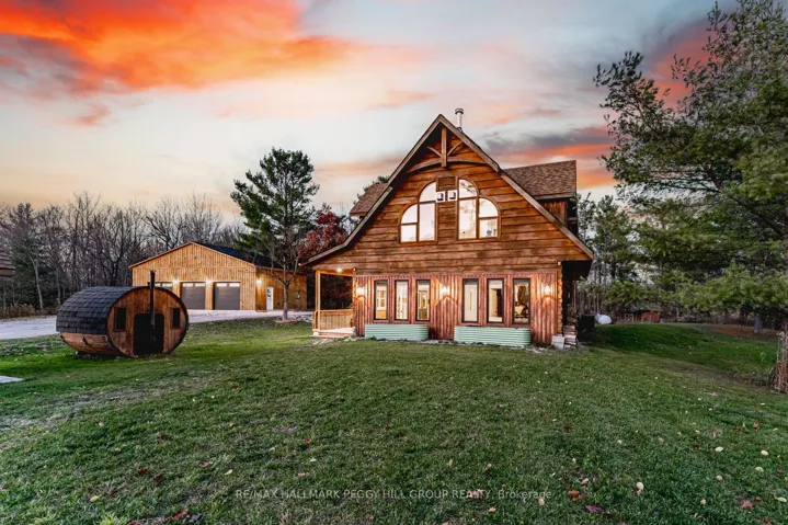 100 ACRES OF NATURAL BEAUTY & A LUXURIOUSLY UPDATED LOG HOME WITH OWNED SOLAR PANELS & VERSATILE OUTBUILDINGS INCLUDING AN OVERSIZED HEATED TRIPLE CAR GARAGE, A SAUNA, SHED, 26FT PLANTA METAL GREENHOUSE, CHICKEN COOP, PUMP HOUSE, A HUNT CAMP & BUNKIE WITH A KITCHEN, BATHROOM, HEATING & A/C! Experience true country living in this log home tucked away on 100 acres with ponds, trails, and forest views, offering the ultimate in peace, privacy, and natural beauty. Showcasing timeless rustic charm, this home features a freshly re-stained log exterior and a full-length front porch, perfect for taking in the serene surroundings. Possibilities are endless with the bunkie- ideal for business or rental use and potential for severance. Outdoor living shines with a sauna, hot tub, chicken coop, fruit trees, garden beds, and a summer gazebo for unwinding in the fresh air. The main level features a cozy family room with a propane fireplace, two bedrooms with walkouts, including a luxurious primary suite with a 5-piece ensuite, a 3-piece bathroom with heated floors, and a flexible office space. The upper level boasts vaulted ceilings, engineered hardwood, and an open-concept kitchen and dining area with quartz counters, tile backsplash, a large island, and stainless steel appliances. The great room features a wood fireplace, statement windows, and a balcony walkout with forest views, plus an additional bedroom and a renovated 5-piece bath. Recent upgrades include fresh interior paint, LED lighting, refinished stairs, brand new flooring, newer door hardware, efficient windows, central vac, and a water filtration system. A solar panel system with battery backup and generator hookups ensures dependable off-grid capability, while newly added Bell Fibe internet keeps you seamlessly connected. Discover the ultimate retreat where luxury, modern comfort, and nature unite in perfect harmony, creating a truly exceptional #Home To Stay.