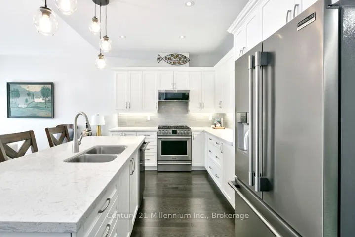 This exceptional 2+2 bedroom, 3-bath open-concept bungalow offers refined living in a stunning natural setting, backing onto a tranquil pond, protected green space, and the picturesque Black Ash Trail. Thoughtfully designed, the main floor showcases a luxurious primary retreat with a spa-inspired ensuite and walk-in closet, rich hardwood floors, an elegant gas fireplace and stunning kitchen anchor the main living space. Step out onto the expansive balcony to enjoy uninterrupted pond views and peaceful surroundings. The walk-out lower level is equally impressive, featuring a large recreation room ideal for entertaining or relaxing, abundant storage, and direct access to a private outdoor sanctuary complete with a hot tub. A two-car garage and seamless indoor-outdoor living complete this rare offering, combining sophistication, comfort, and privacy in an exceptional bungalow design. Located within the Balmoral Community, residents enjoy access to a private clubhouse, indoor therapeutic pool, fitness facilities, golf simulator, walking trails, snow removal, grass maintenance and a variety of social and recreational activities, offering a lifestyle focused on connection, activity, and low-maintenance living.