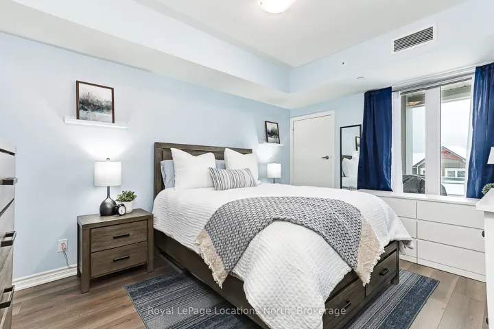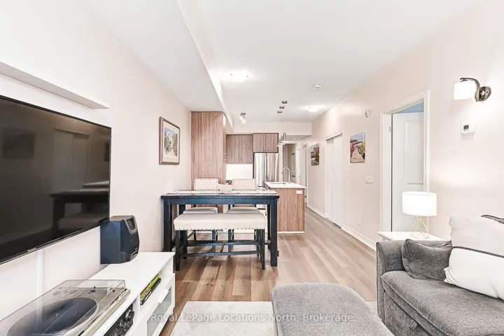 Welcome to The View at Blue Fairway. This Condor model offers 887 sq ft of thoughtfully designed living space. The beautifully upgraded suite features over $30,000 in upgrades (quartz backsplash, flooring, appliances, kitchen cabinetry, lighting, full glass shower, vanities, sinks, and fixtures), enhancing both style and functionality throughout. Enjoy a modern, open-concept layout filled with natural light, quality finishes, and attention to detail that sets this home apart. Additional features include in-suite laundry, secure underground parking with key-fob access, and a large storage closet conveniently located beside the unit. Residents enjoy access to builder amenities including a gym, outdoor pool, men’s and women’s change rooms, and a playground, enhancing the lifestyle appeal for families, guests, and year-round residents alike. Ideally located close to trails, golf, skiing, and downtown amenities, this exceptional condo offers modern comfort, low-maintenance living, and year-round enjoyment in one of Collingwood’s most sought-after four-season destinations.This is a perfect opportunity for full-time living, weekend getaways, or investment.