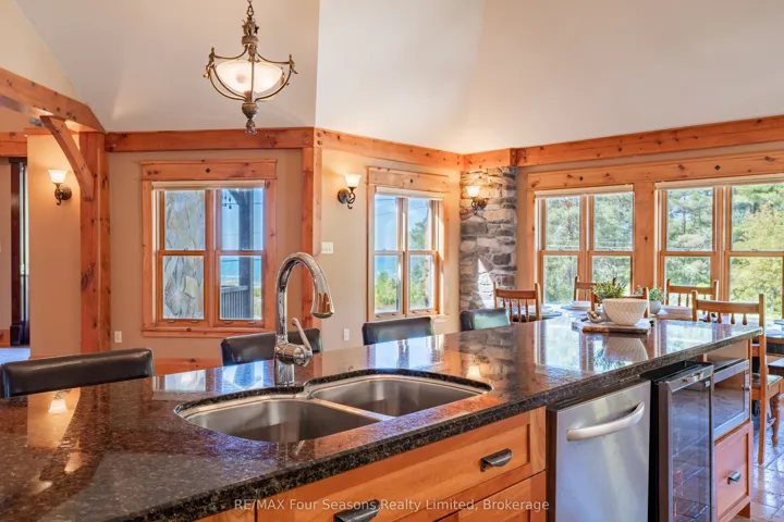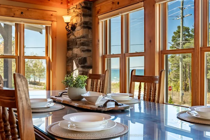 Enjoy life just steps from the white sandy shores of Allenwood Beach in this beautifully designed custom home, featuring 3,552 sq. ft. of finished living space crafted for comfort, quality, and an exceptional lifestyle. Enjoy spectacular water views and breathtaking sunsets, surrounded by mature trees for added privacy and serenity. With striking curb appeal, the exterior showcases Nordic granite, brick, and Muskoka-inspired landscaping with armour stone and jasper rock. Inside, soaring 23 pine-beamed ceilings and expansive windows flood the home with natural light. The main floor features a spacious primary suite and convenient laundry, making everyday living effortless. The chefs kitchen is built to impress with a 14′ granite island, premium gas stove, travertine-tumbled marble flooring, and abundant storage. With six bedrooms and four full marble bathrooms, there’s space for the whole family and guests. The finished basement offers in-floor heating, a wet bar, recreation area, and a garage door opening to a large storage space perfect for kayaks, paddle boards, or jet skis. Ideally located just steps to beaches, minutes to shopping, schools, and medical facilities, with easy access to Collingwood and Blue Mountain, this is exceptional beachside living. Book your private showing today and start every day with the sound of waves and unforgettable sunsets.