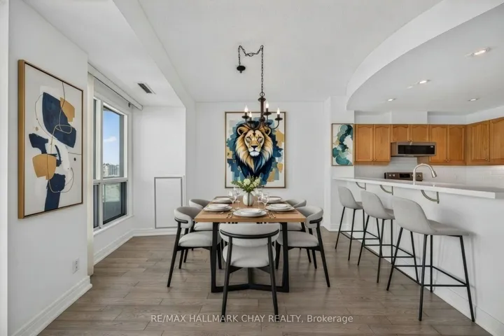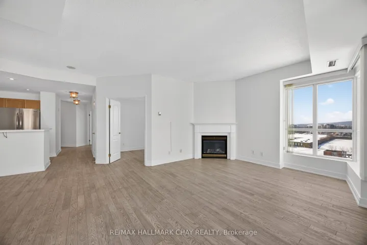 NEW PRICE!! Barrie Condo Corner presents an incredible opportunity at the coveted Grand Harbour Condominiums, right on Barrie’s waterfront. This bright and spacious 1342 square foot, 2-bedroom plus den suite is move-in ready and has been thoughtfully upgraded for modern living. The refreshed kitchen features stainless steel appliances, tiled backsplash, new counters, and a deep double sink with a new faucet, setting the tone for style and functionality. A sparkling new dining room chandelier, updated vanities, and engineered hardwood floors add elegance and comfort throughout the home. Sunlight floods the unit, which features wrap-around west, north and east views through the large windows giving it a nice open and airy feel. The rare natural gas fireplace is a beautiful attribute in this unit making it a cozy focal point. Step out onto the private balcony and take in the stunning views of Kempenfelt Bay, Barrie Marina and downtown Barrie. The spacious primary bedroom is a peaceful retreat featuring a walk-in closet with built-in organizers and an ensuite bathroom that features a jetted tub and a separate tiled shower. In-suite laundry, one owned underground parking space, and a storage locker complete this unit. Residents enjoy resort-style amenities including an indoor pool, hot tub, sauna, exercise room, party room, and games room. All of this is just steps from waterfront trails, downtown Barrie, and everything the city has to offer. This is more than a condo. It is a waterfront lifestyle, combining comfort, style, and the best of Barrie living.