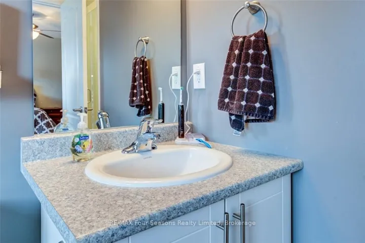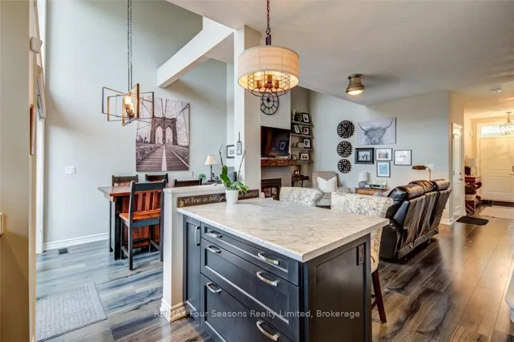 Blue Fairways freehold townhome nestled near Cranberry Golf Course on a premium lot. Just a seven minute drive to the ski hills but yet a 10 minute drive to Historic downtown Collingwood. This Pine Valley floorplan consists of 1216 above grade sq ft with another 419 on the lower level. Open plan main level with vaulted ceilings, gourmet kitchen with extended breakfast area, gas fireplace and engineered hardwood flooring. Dining area off the kitchen leads to a custom built deck which is offers privacy, shelter and entertainment in the warmer months. Second level offers a primary bedroom with ensuite, a further bedroom, 4 piece bathroom and laundry facilities. The lower level is finished with a large family room, currently set up as a bedroom with a 2 piece bathroom. Single car garage with inside entry. Directly behind the townhome is a park area and recreation centre with outdoor pool and indoor gym. Furniture and furnishings are available with the right offer. POTL fees are $165 per month, includes lawn maintenance, street maintenance and use of the rec centre.