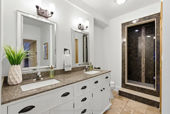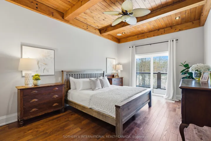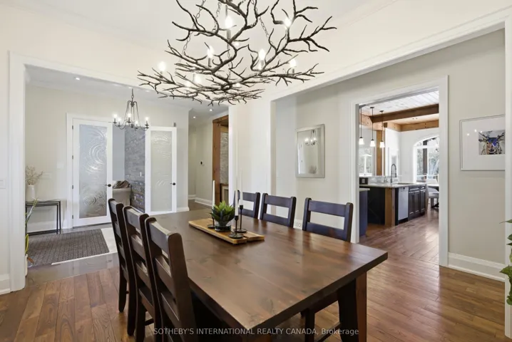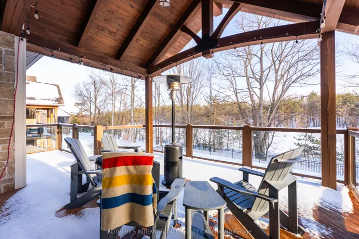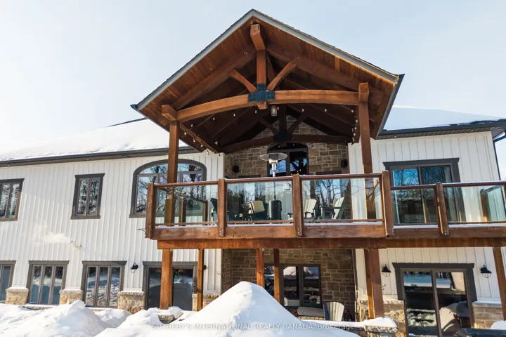 Nestled in the prestigious Horseshoe Valley community, just steps from the resort, trails, and green space, this custom-built bungalow offers privacy, luxury, and stunning south-east views over nature. Situated on a quiet cul-de-sac, the home welcomes you with a grand covered porch entrance and an impressive 14 ft timber arch. Large windows throughout fill the home with natural light. Entertain effortlessly in the great room with a gas fireplace or in the gourmet kitchen featuring quartz counters, backsplash, premium appliances, and a walk-in pantry. The space opens to a large 400 sq.ft. covered deck with expansive views. A built-in surround sound system extends throughout the home, creating an immersive atmosphere for entertaining. The luxury primary suite showcases timber ceilings and a private walk-out to the back porch, along with a spa-like ensuite that includes a steam shower and walk-in closet. Two additional bedrooms, an office, and laundry complete the main level, where solid bamboo hardwood flooring runs throughout. The walk-out basement is a true retreat, featuring a wet bar, theatre room, gym/leisure area, sauna, heated floors, and a bedroom with its own ensuite bathroom. All bathroom floors in the home are heated for added comfort, and the remainder of the home features 10 ft ceilings, enhancing the sense of space and openness. Outdoor living shines with beautiful, professionally landscaped grounds featuring a stone patio, Arctic Spa hot tub, sprinkler system, and fire pit area – perfect for relaxing or hosting under the stars. The property backs onto recreational trails and forest, offering exceptional privacy and direct access to nature. Additional highlights include a heated driveway, a heated three-car garage, and a full Generac backup generator. With unmatched privacy, scenic views, and proximity to local amenities, schools, hospital, and major highways, this property represents a rare opportunity in a highly sought-after community.