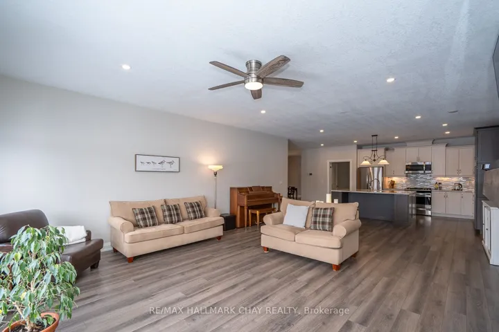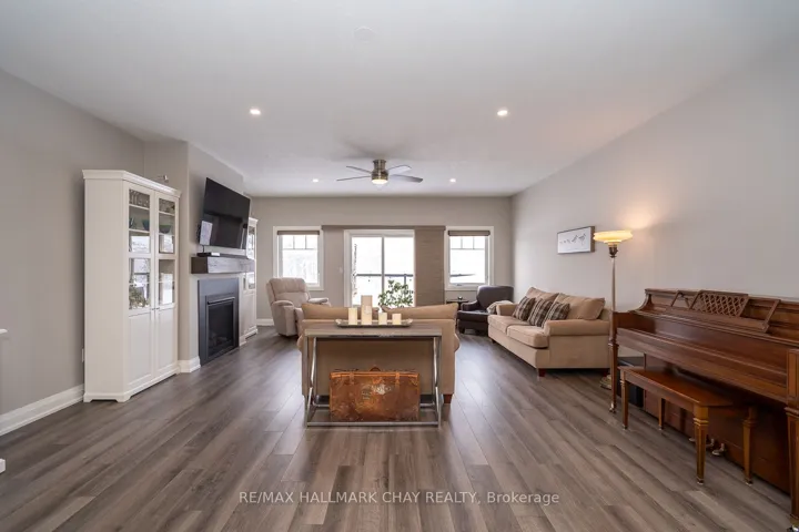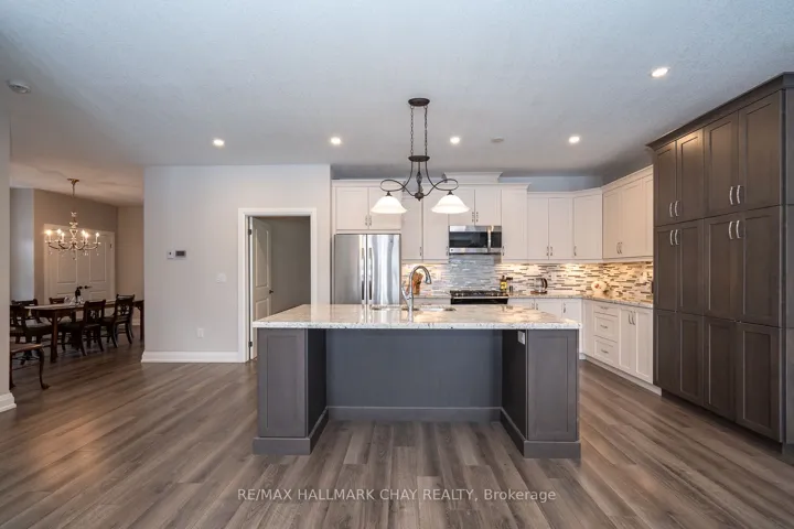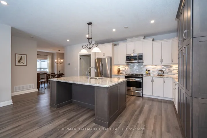 LUXURY FREEHOLD END-UNIT TOWNHOUSE BUNGALOW, BACKING ONTO GREEN SPACE, WITH BEAUTIFULLY FINISHED WALK-OUT BASEMENT, MINUTES FROM HORSESHOE VALLEY RESORT!……………Built in 2015, and with over 3,000 sq ft finished, this modern open concept home, featuring 9 ft ceilings, has an incredibly bright and spacious feel……………Main floor is highlighted by massive living room with gas fireplace, & walk-out to deck, and upscale kitchen with granite counters, backsplash and large breakfast island……………Plenty of space for vehicles and toys with 4 car driveway & 2 car garage w/man-door to huge mud/laundry room……………Main bedroom has 4 pc ensuite, w/i closet, and large windows with nice view of green space…………..Sensational basement with walk-out to patio is incredibly bright and wide open, featuring gigantic rec room, bedroom, gym area, office nook, wet bar, and 5 piece bath……………Premium location with a number of conveniences, luxuries, and adventures within 5/10 mins including: Highway 400, Horseshoe Valley Resort, Vetta Nordic Spa, New elementary school, & nurse practitioner…………….Other features/upgrades include: Bell Fibe Hi-speed internet, Roof 2025, 200 amp electrical service, gas stove, pot lights, freshly painted interior with neutral tones, SS kitchen appliances……………This truly is an exceptional home in a prime area.