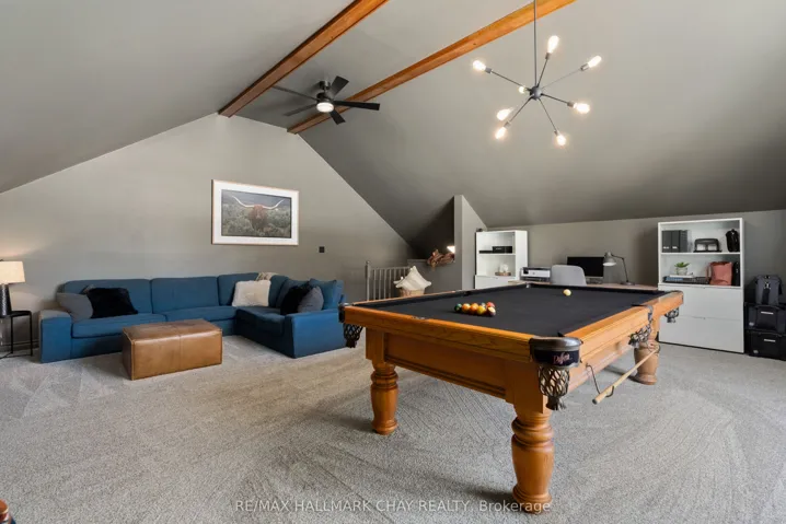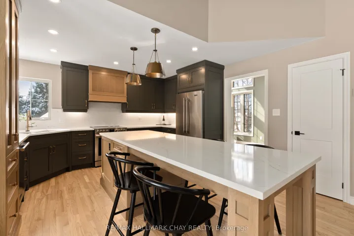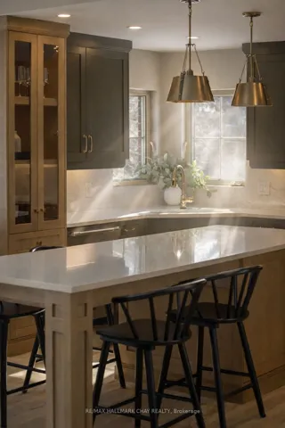 Elevated Luxury in Prestigious Forest Hill Estates, Midhurst. Welcome to an exceptional residence where refined design meets everyday comfort, set on a stunning 102′ x 197′ park-like lot. This beautifully updated 3+1 bedroom, 3 full bathroom home offers approximately 3,309 sq. ft. of finished living space and a rare full-size triple car garage-perfect for a full-size truck or SUV. A soaring main level with vaulted and cathedral ceilings creates an immediate sense of grandeur, complemented by a spacious layout featuring a formal dining room, inviting den, main-floor laundry, and an open-concept living room with gas fireplace. The custom kitchen showcases rift-cut oak cabinetry, quartz countertops and backsplash, premium appliances, and elevated lighting-designed for both style and function. The bedroom wing includes three generous bedrooms, highlighted by a luxurious primary suite with custom walk-in closet and spa-inspired ensuite. A recently renovated main bath and an upper loft/recreation space offer flexibility for a home office or media lounge. The lower level provides excellent in-law potential with separate garage access, a spacious bedroom, full bath, abundant storage, and expansive unfinished space ready to customize. Outside, the fully fenced backyard is a private retreat with mature trees, newer deck with pet ramp, hot tub, irrigation system, and ample room to entertain. NOTABLE UPGRADES include the custom kitchen, refinished hardwood, newer carpeting, updated doors, exterior stonework and front steps, soffits/eaves/downspouts, new furnace, lighting, paint, renovated bathrooms and garage doors. Ideally located near top-rated schools, parks, trails, and amenities-this is a rare offering in sought-after Midhurst.