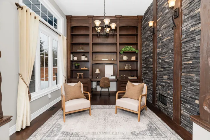 This stunning custom-built stone and stucco home offers exceptional curb appeal and style with over 100k in recent upgrades. Step inside to a grand office featuring custom cabinetry, stone accents, timber beams, and soaring ceilings – the perfect workspace to inspire productivity and creativity. An open-concept layout flows seamlessly from the kitchen through the living and dining areas, showcasing gorgeous new premium flooring (2024). The kitchen is a true showpiece with refreshed cabinetry equipped with pull down accessible shelving, quartz countertops which extend into the backsplash (2025), under-cabinet lighting, built in wall appliances, induction style stovetop and a striking coffered ceiling that adds a touch of sophistication. Step outside to the private backyard – complete with pergolas, a hot tub, fully fenced yard (2024), and a charming new cedar plank shed (2024). Inside, unwind in the oversized primary bedroom with a spacious walk-in closet and a luxurious spa-like ensuite. Two additional large bedrooms and a beautifully finished 4-piece bathroom offer plenty of space for family or guests.The lower level impresses with an expansive open-concept family room, a stylish bar, custom wine cellar, and new premium flooring throughout. A fourth bedroom, additional bathroom, and an infrared sauna complete this incredible space – ideal for entertaining or the perfect space for extended families looking for their own private area. The fully finished, heated garage with sleek epoxy flooring is the perfect spot to store your summer wheels in style!
