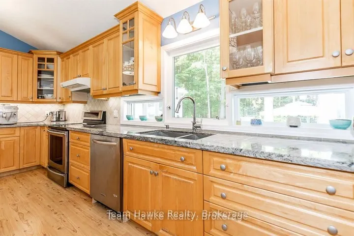 Imagine walking 5 minutes to a private wide sandy beach in Deanlea Beach, Tiny Township. Your backyard looking onto a municipal forest. This spacious 4 bed, 3 bath bungalow is larger than it looks with almost 2,000 sq ft of living space on the main floor including the screened in porch. Renovations in 2014 have added a steel roof, new septic, double garage, primary suite wing, designer kitchen, screened in porch. It also included the lower level which has 2 bedrooms, a 3-piece bath, and a spacious games room. Plenty of room to host multigenerational gatherings. The large interlocking driveway fits 6 vehicles. An open concept kitchen with loads of storage and extensive granite counters and island is a cook’s and entertainer’s dream. Heated floors keep your feet toasty on chilly days. High speed fibre-optic internet makes it easy to work from home. Looking out from the kitchen and dining room is avista of low maintenance natural gardens, flagstone pathways and forest. Quality construction and finishes throughout. A dry stream riverbed traverses the flagstone path to the front door. Walking down to the beach for a stroll on the long sandy beach or to view the sunset, who could ask for more? Annual Deanlea Beach Association fee of $75.00. Annual municipal water fee of $1,114.00.