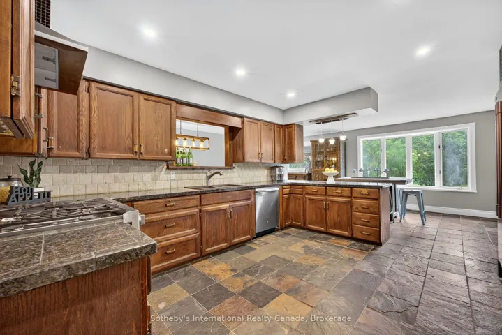 A must-see to truly appreciate the space this home offers! This warm and welcoming home in Creemore provides far more room and flexibility than first meets the eye. Set on a private 1-acre lot framed by mature trees, this impressive 5-level residence blends comfort, versatility, and small-town charm.Featuring 4 bedrooms, 3 bathrooms, and multiple living areas, the layout is ideal for growing or multi-generational families, with excellent potential for an in-law suite. The main floor welcomes you with a cozy gas fireplace and an updated eat-in kitchen complete with a built-in fridge/freezer, wall oven, gas stove, and generous dining space – perfect for gathering with family and friends. Large windows throughout fill every level with beautiful natural light, creating bright, inviting spaces. Upstairs, the primary suite feels like a private retreat – an expansive 800 sq. ft. sanctuary with built-ins, an ensuite, laundry, a private deck, and plumbing in place for a future coffee bar. Three additional bedrooms share a full bathroom, offering comfort and convenience. The bright lower-level family room features a walkout to the backyard and a striking double-sided stone fireplace (currently non-operational but ready for restoration). Another level offers a rec room, bedroom or office, a 2-piece bath, and additional laundry – providing exceptional flexibility for guests, hobbies, or work-from-home needs. Outside, unwind in your peaceful backyard oasis surrounded by mature trees – perfect for entertaining, stargazing, or giving kids and pets room to roam. The heated, oversized double garage with workshop space and 220-volt service is ideal for projects, storage, or recreational toys (with space for up to 3 vehicles). Located just a short stroll from the shops, cafés, and restaurants of Creemore, this property offers the perfect blend of space, privacy, and community.