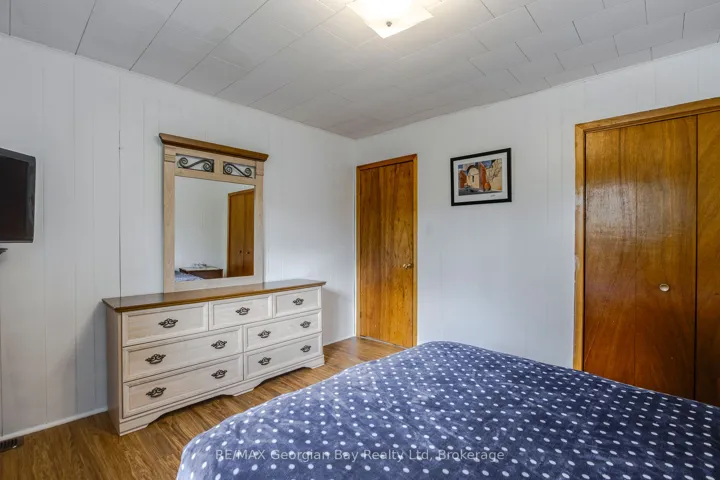 This three bedroom home is located on a half acre lot in a quiet setting within the Balm Beach community. Located on a quiet dead-end street and backing onto a treed acreage you will enjoy peace and quiet throughout the seasons. The beach and amenities including restaurants, tennis and pickle ball courts, convenience store/LCBO outlet are a short stroll away, and the Town of Midland is under 10 minutes by car. The abundant windows together with vaulted ceilings create a light and breezy atmosphere. Gas heat and central air. Enjoy quiet evenings on your deck that spans the entire front of the home. Both of the two outbuildings which are presently used as storage and workshop area have hydro. Photos taken prior to current occupant.