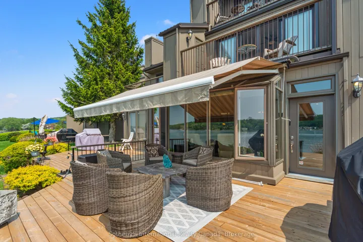 Welcome to Tannery Cove, Penetanguishene’s exclusive waterfront townhouse community, where maintenance-free living meets the allure of waterfront living. This impressive 2,550 sq ft townhouse boasts 2 bedrooms plus a loft, providing ample space for relaxation and comfortable living. With 3.5 bathrooms, convenience and privacy are at the forefront of this property. As you enter the main level, you’ll be greeted by an open concept kitchen, dining room, beverage bar and sunken living room with a gas fireplace and solarium. The kitchen features bar seating, a counter-depth Sub Zero refrigerator, stainless steel stove with electric induction stovetop, and microwave, ensuring that every culinary endeavour is met with ease. Walkout to the spacious deck with ample room for seating, BBQing and a convenient retractable awning. The main level also showcases a powder room and an office with storage. On the second level, the primary bedroom features a gas fireplace, a walkout to a balcony that overlooks the water, and a luxurious 5-piece ensuite with jet tub. The second bedroom also boasts its own balcony and 3-piece ensuite. Another full bathroom and a laundry closet complete this level. The third level offers a spacious loft with a vaulted ceiling and skylights. This versatile space features built-in beds and a walkout to the balcony to soak in the breathtaking sunset views. Convenience continues with an attached single-car garage. Take advantage of the pristine shoreline, which is clean, deep, and naturally beautiful. Situated in a desirable location, this property is in proximity to downtown, Dock Lunch, Discovery Harbour, a dog park, schools, community center, shopping center, golf courses, fishing spots, scenic trails, & marinas. NEW FURNACE July 2024. **EXTRAS** Condo Fees Cover Essential Amenities Such As The Dock Slip (With 30 Amp Service And Water Hookup for a boat up to 40 feet), Swimming Pool, Ground Maintenance & Snow Removal, Building Insurance, Common Elements