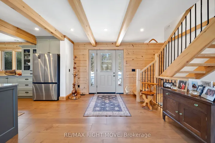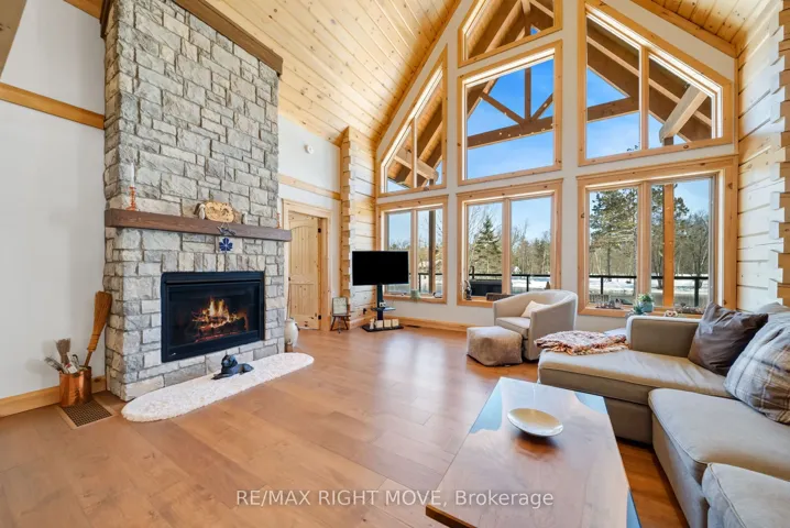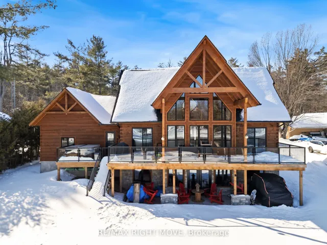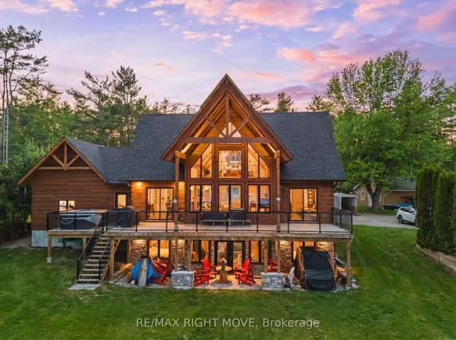 Set along 103 feet of open waterfront on Mc Leod Drive in Severn, this custom built solid log residence offers a rare blend of craftsmanship, scale, and natural setting. The moment you step inside, the architecture makes an impression. Soaring ceilings, an open concept living and kitchen area filled with natural light, and expansive windows frame beautiful river views from many of the principal rooms. It is a home designed not just for living, but for enjoying its surroundings. The kitchen and family room connect seamlessly, creating a comfortable space suited to both entertaining and quiet evenings at home. Patio doors open to a riverside porch where the outdoors becomes a natural extension of the living space. A main floor bedroom with a private ensuite offers excellent flexibility for guests or multi generational living. Above, the open loft style primary suite provides a peaceful retreat with large his & her custom walk in closets and a well appointed spa like ensuite. The loft design maintains a connection to the open living space below while still offering privacy. The fully finished walkout lower level adds even more living space with a large recreation room, two additional bedrooms, and a 3 piece bathroom, providing comfortable accommodation for family and guests. Step outside from the walkout and unwind in the hot tub, perfectly positioned to take in the river setting year round. With 103 feet of frontage on the Severn River and a solid log home designed for lasting quality, this property offers an exceptional waterfront lifestyle 15 minutes from Orillia and its amenities while still feeling comfortably removed from the pace of town.